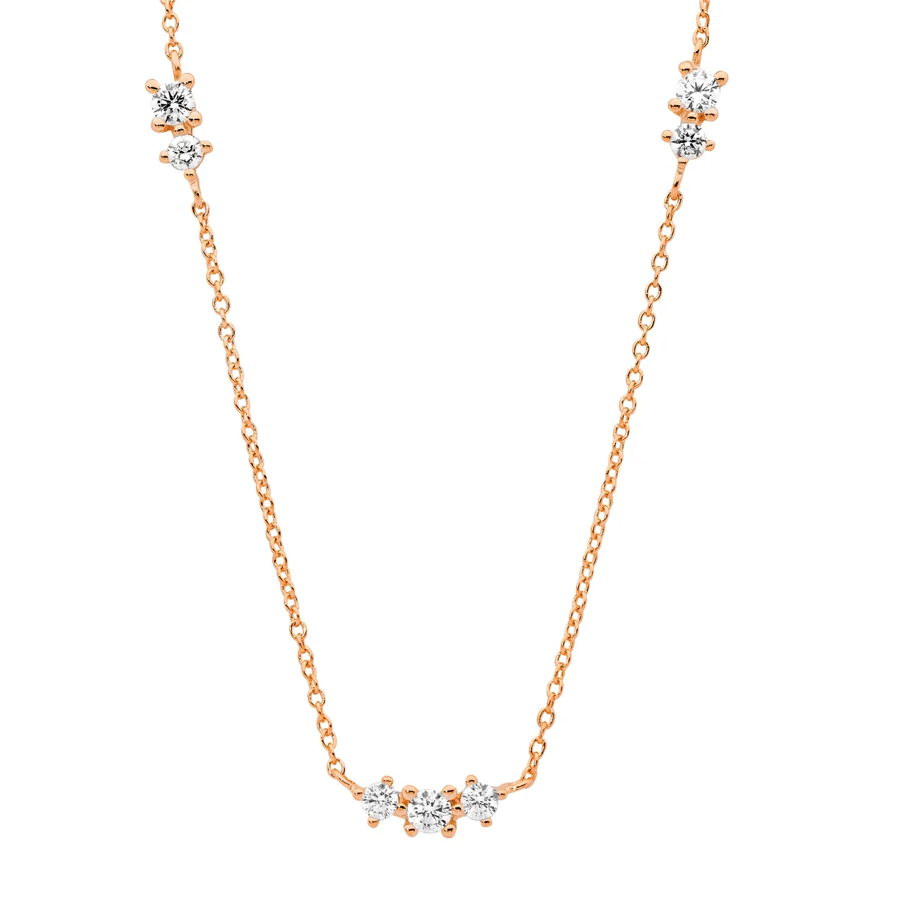 Ellani SS WH CZ X3 Groups On 40cm Chain Plus 5Cm Ext.