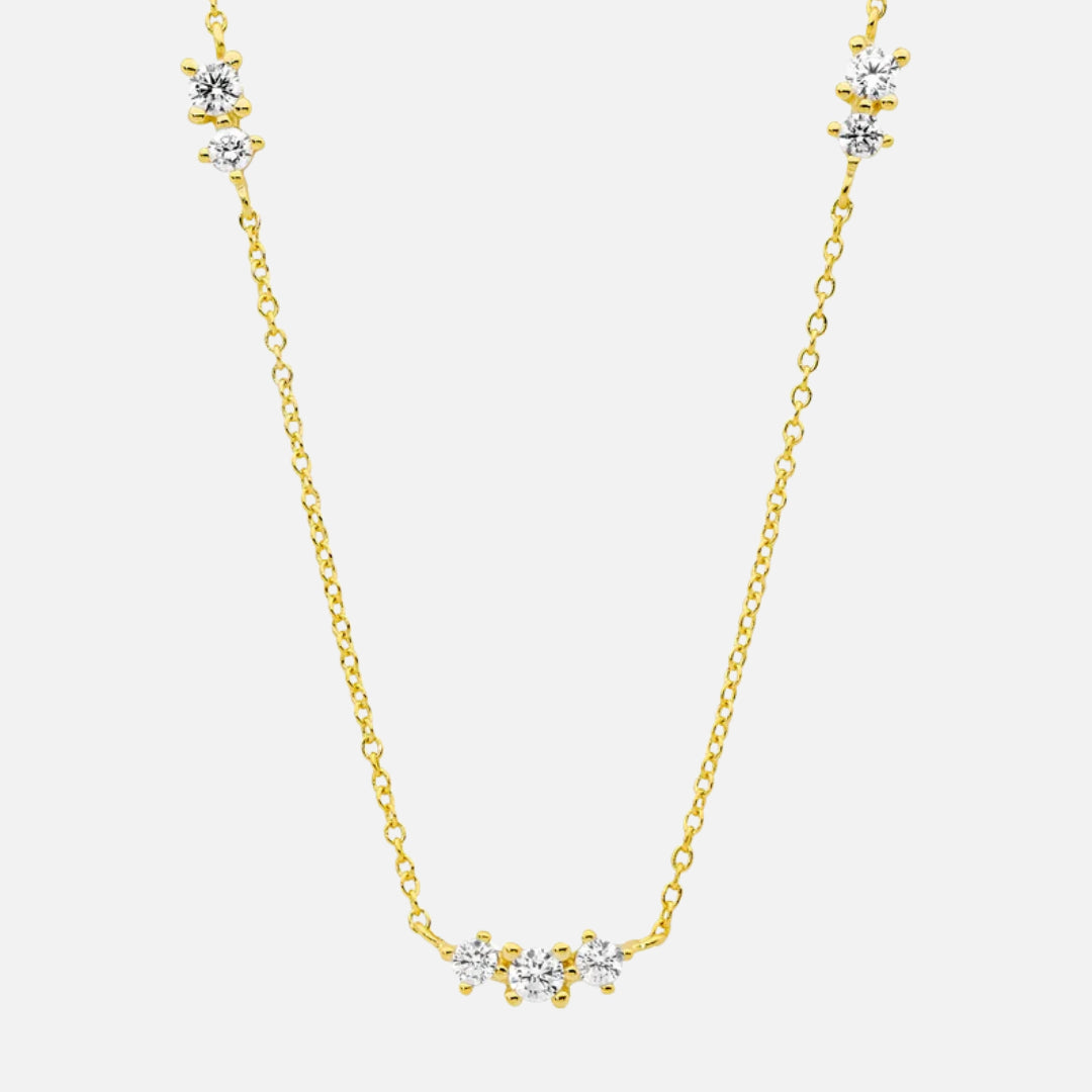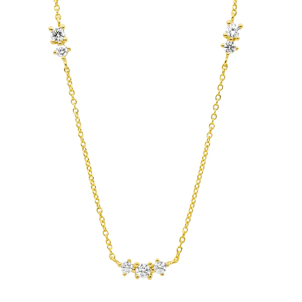 SS WH CZ X3 Groups On 40cm Chain Plus 5Cm Ext. W/Gold Plating