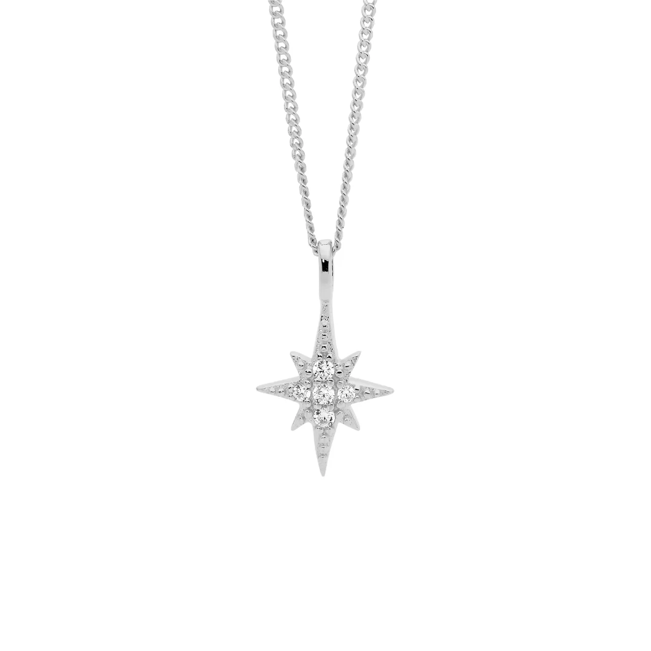 Ellani Sterling Silver Star Pendant With Cubic Zirconias