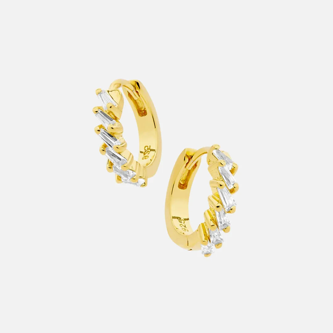 Ellani Sterling Silver Tapered Baguette 13mm Hoop Earrings