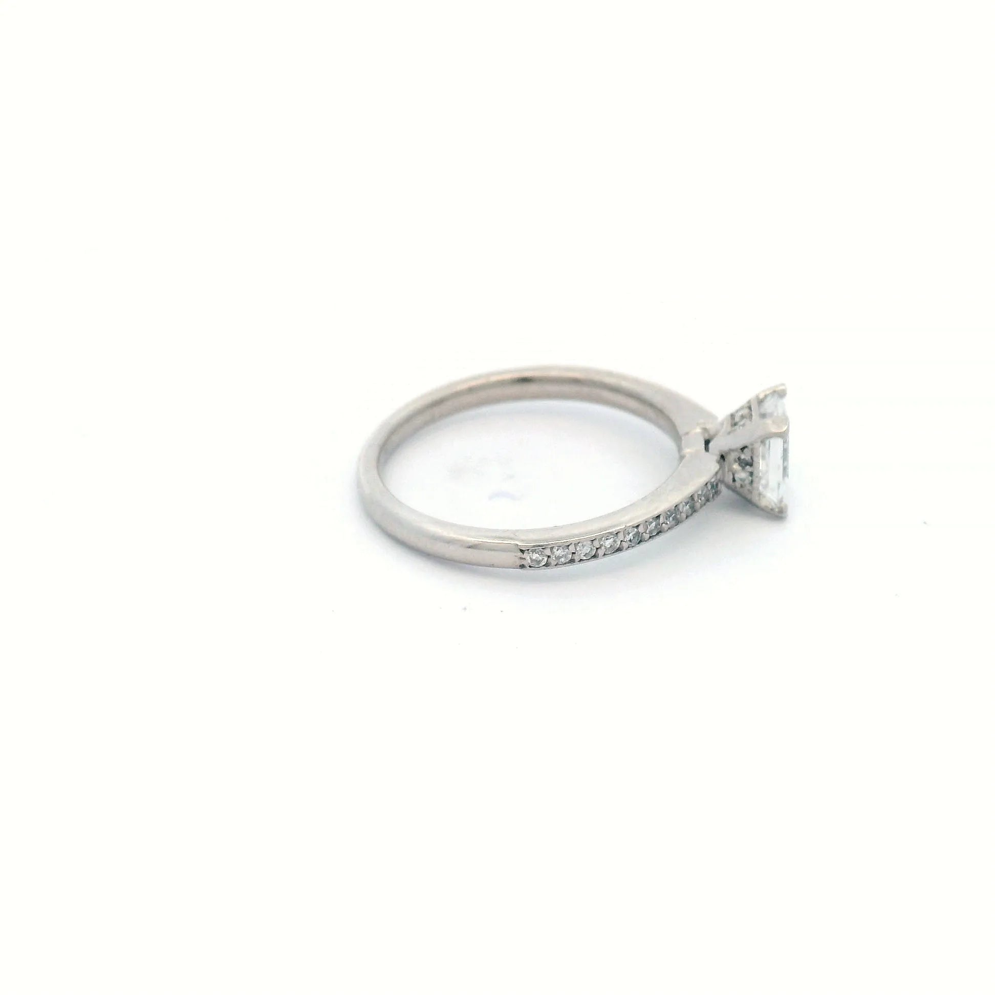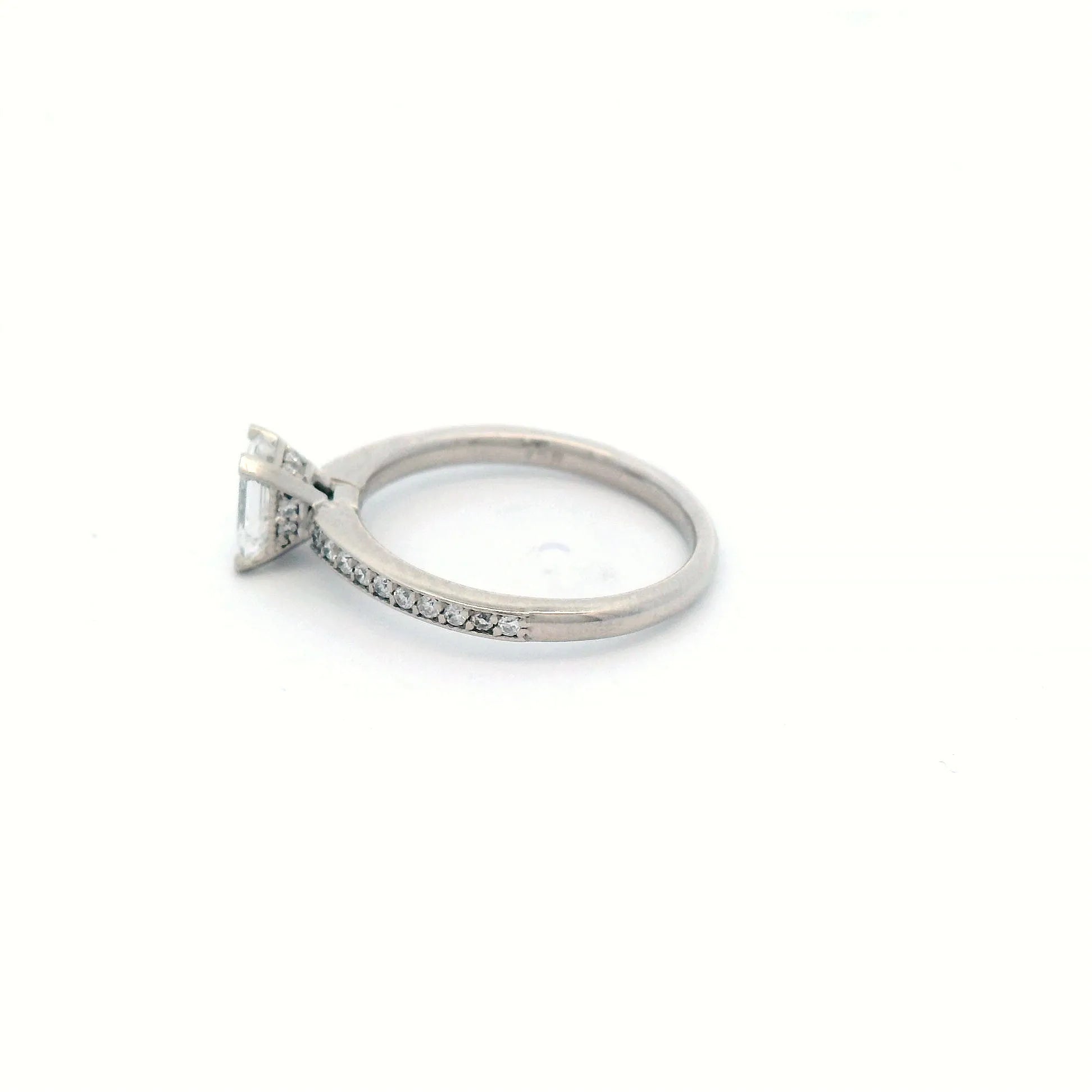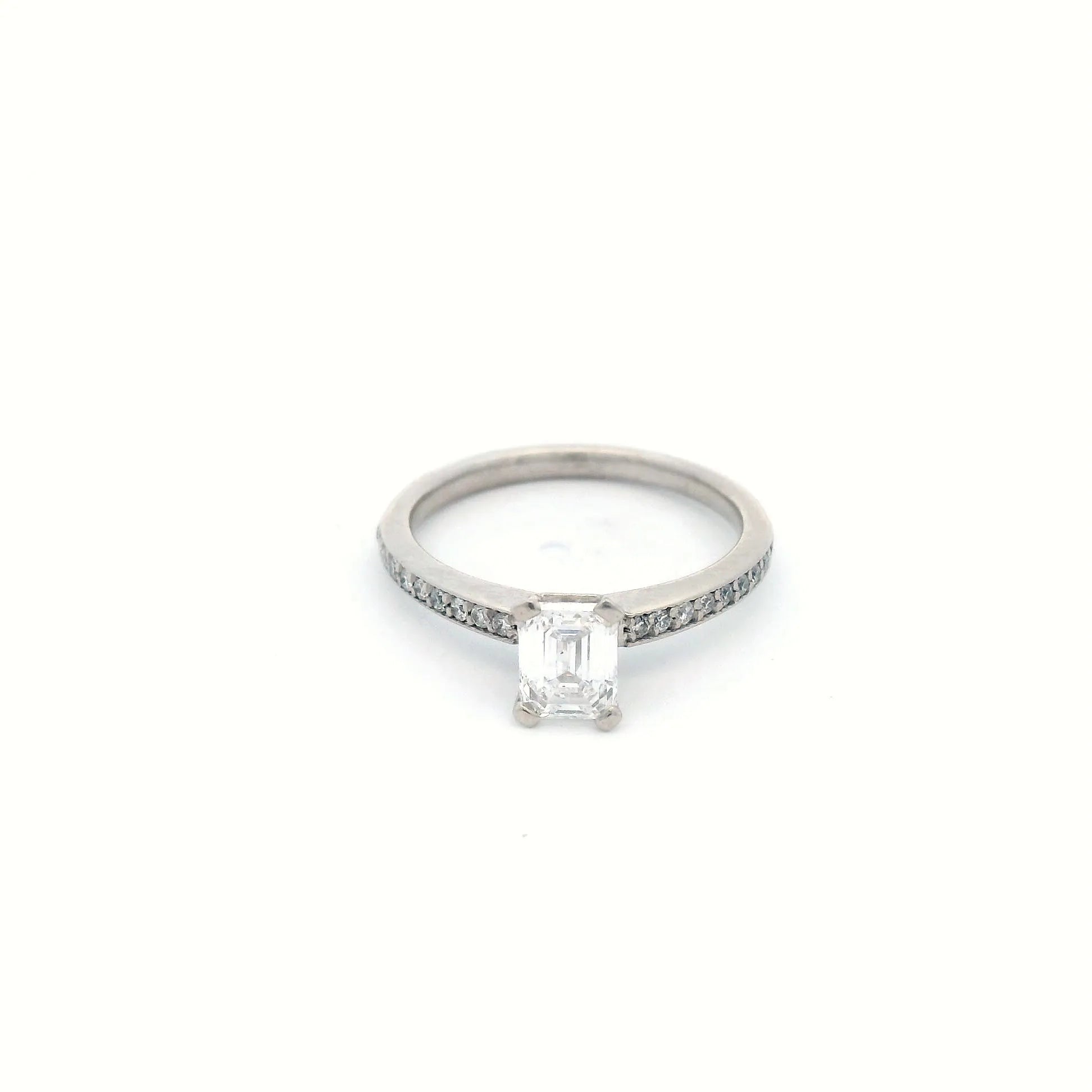 Emerald Cut Diamond with Shoulder Set Diamond in White Gold