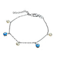 Evil Eye and Pearl Hanging Charm Bracelet in Sterling Silver
