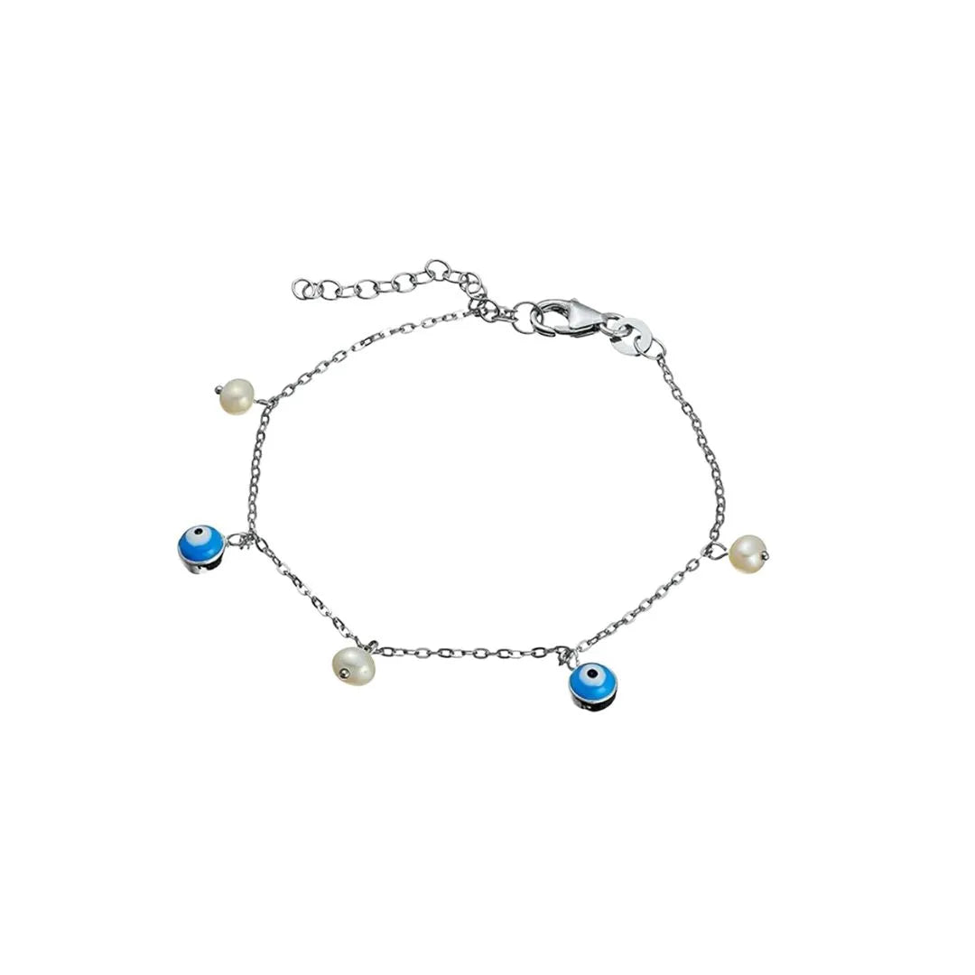 Evil Eye and Pearl Charm Bracelet in Sterling Silver