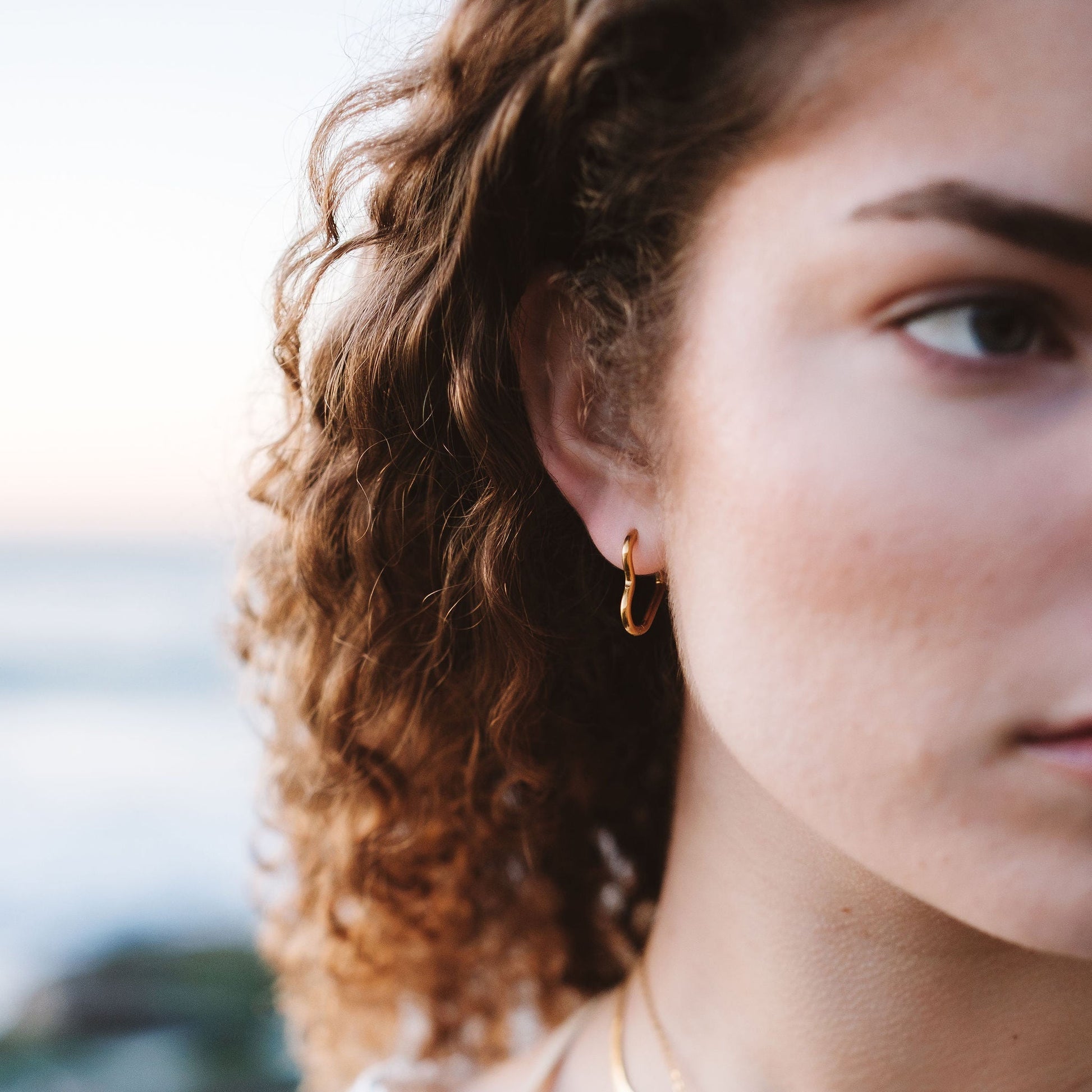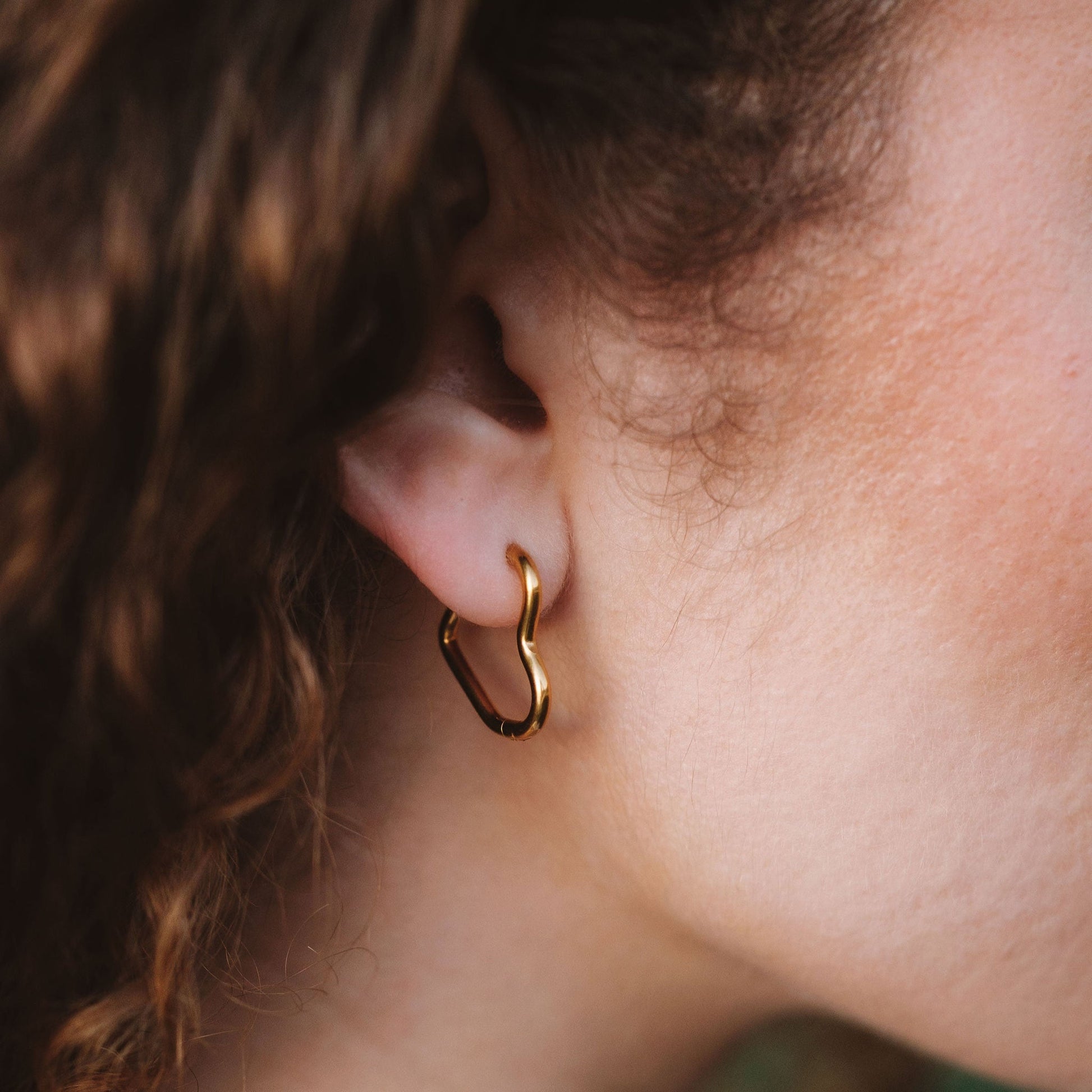Crafted in a smooth, polished 18K genuine gold that is permanently coated to ensure waterproof, tarnish proof, forever love. These sweet huggies are lightweight and comfortable, perfect for all-day wear. Their simple yet stylish design makes them a favourite for stacking too. The easy-to-use closure ensures they stay securely in place, offering a hassle-free wearing experience. These earrings are a must-have accessory for anyone looking to add a subtle yet unique accent to their look. Perfect on their own and for stacking comfortably up the ear. Delightful matched with our Bamboo Huggies and Atonement Pendant as seen in our photoshoot.