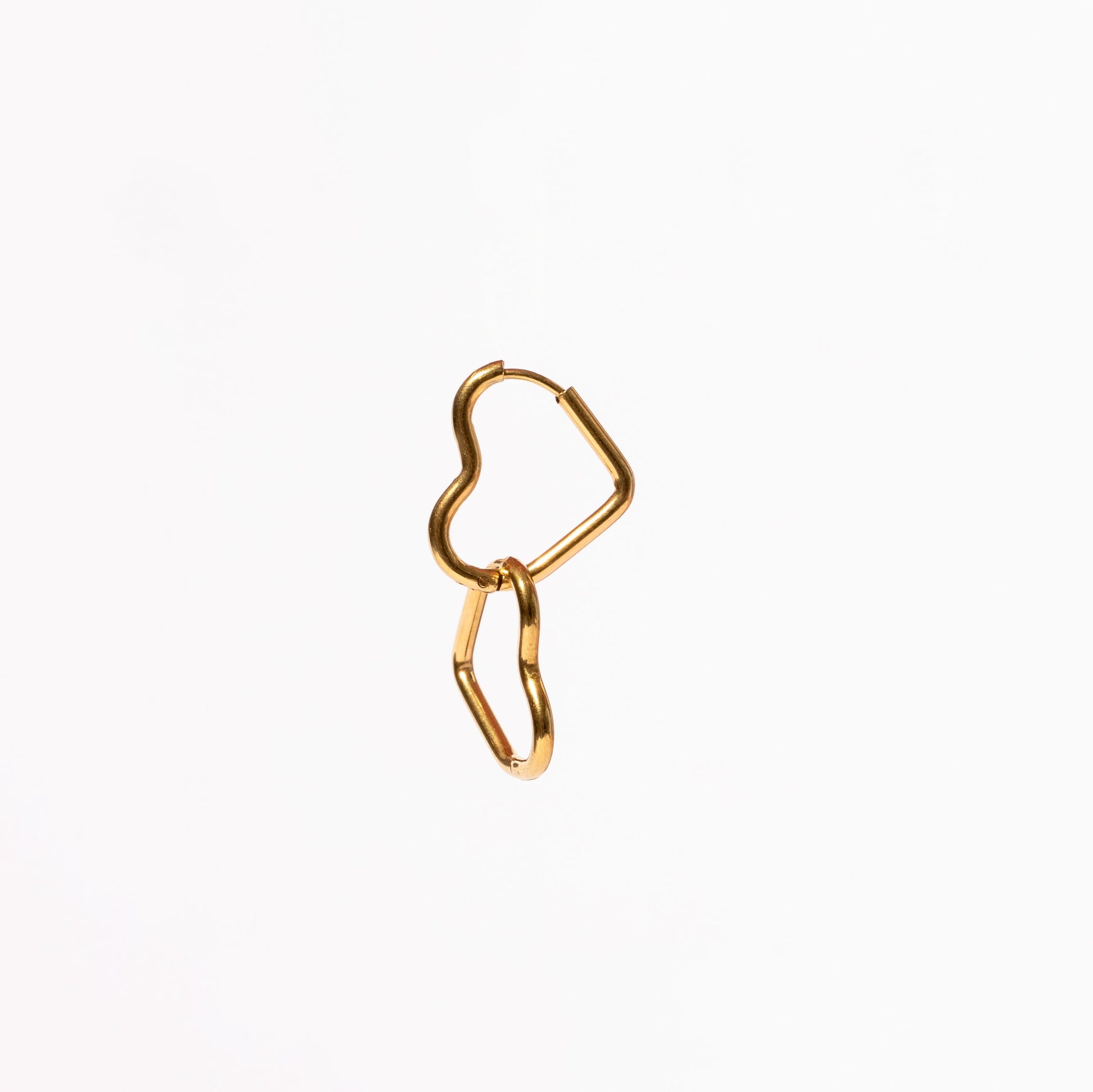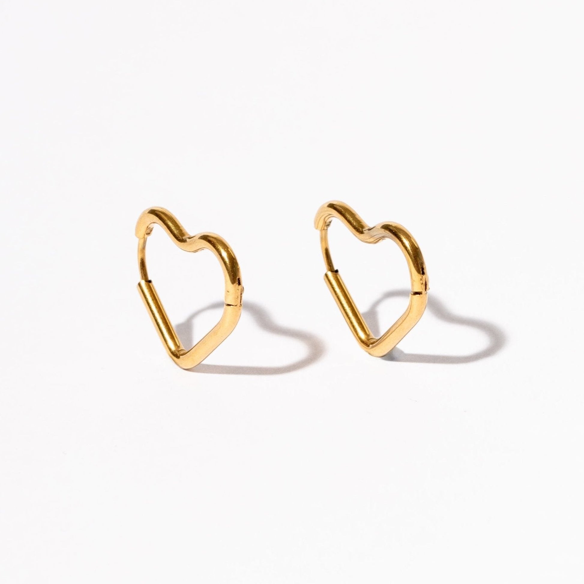 These chic, heart-shaped hoop earrings bring a touch of elegance and charm to any outfit.