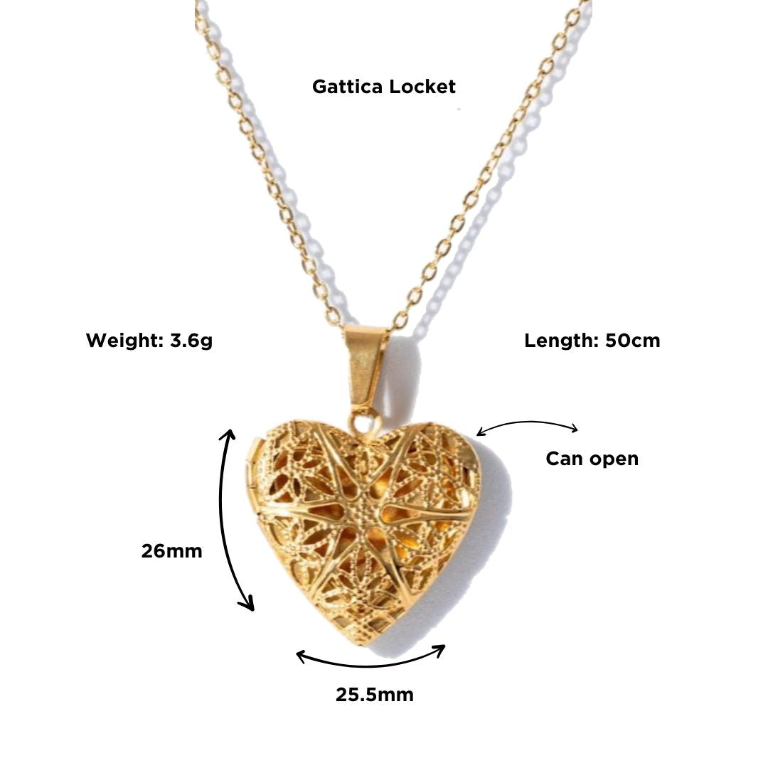 A beautiful, special gift to someone special or to yourself. Lockets like this go for thousands in solid gold, especially with detailed filigree work. Ours gives you the same cherished jewellery, for a fraction of the cost. The heart measures 3cm from top to bottom and 3cm across at its widest point. The front of the locket is skilled openwork filigree, meaning you can see through it a little. The back side of the heart is solid. The chain is included and is 45cm in length with a 6cm extender attached, so it can be worn to suit your own personal style. 18k Gold coated that won't ever fade or tarnish. A timeless forever piece.