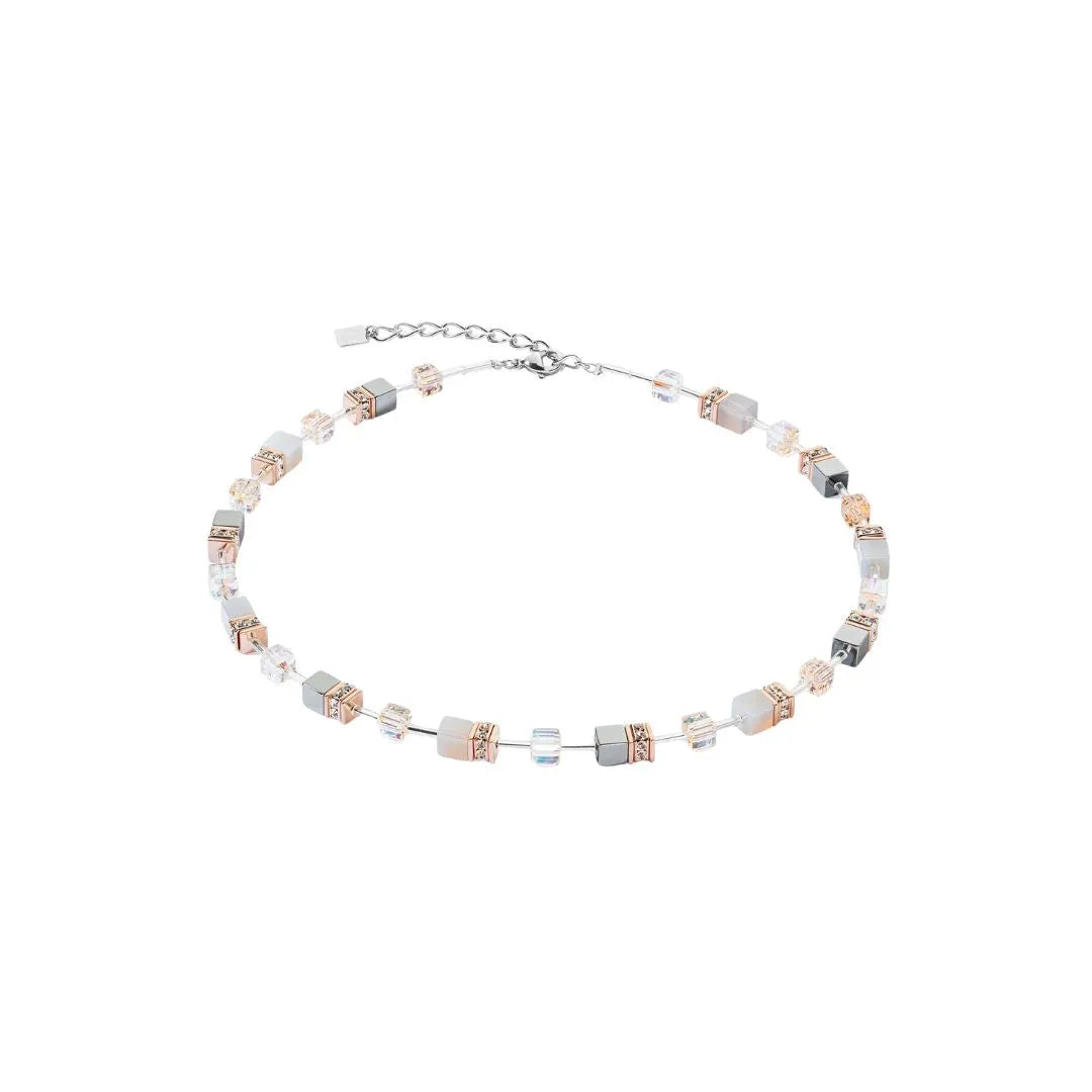 Expand your jewellery collection and round off your outfit with the GeoCube® Iconic Precious necklace in rose gold plated stainless steel, natural Agate, hematite and peach European Crystals. Suitable for all sorts of different occasions, this piece will add a touch of luxury. Handmade in Germany with natural Agate, haematite with titanium oxide finish, European Crystals, rhinestone rondelles and rose gold plated stainless steel. This necklace gives the familiar design a fresh and modern lift.