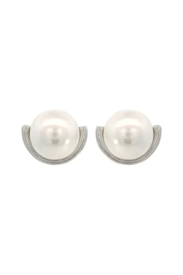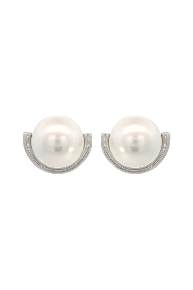 GEORGINI ADAGIO CRESCENT NINE-2-FIVE PEARL CRESCENT EARRINGS SILVER