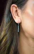 Expertly fashioned from rhodium-plated 925 sterling silver, these earrings dazzle with a line of nine radiant cubic zirconias in each earring. With a refined silhouette measuring 37mm in length, they create an elongated, graceful look that’s perfect for evening wear or elevating your daily outfit.