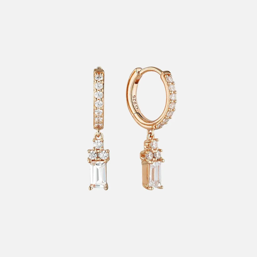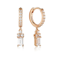 | Design Style | Hoop earrings with baguette and trilogy of Cubic Zirconia stones |
