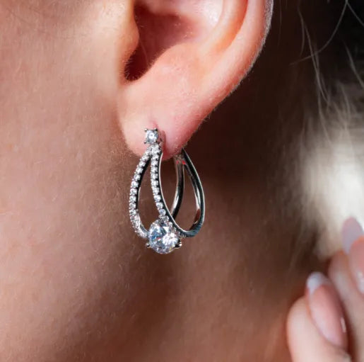 | Design Style | Hoop earrings with a suspended sparkling stone |