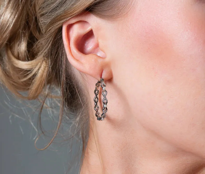 A round of applause for the Ovation Earrings by Georgini – a fabulous fusion of timeless elegance and modern flair. Inspired by Georgini’s iconic infinity designs, these luxurious hoops are elevated with delicate pearl droplets that add graceful movement and a touch of sophistication.