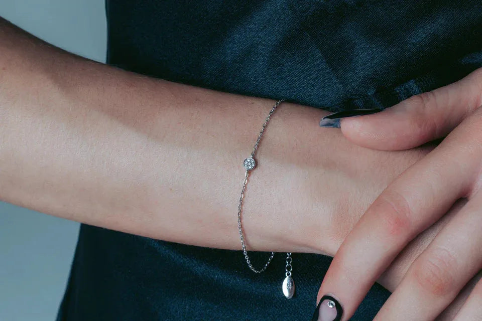 The Dotti bracelet is set with glimmering cubic zirconia stones in a tiny disc design. We love that you can layer it for instant glam or wear it on its own to add a super gorgeous hint of sparkle to your day!