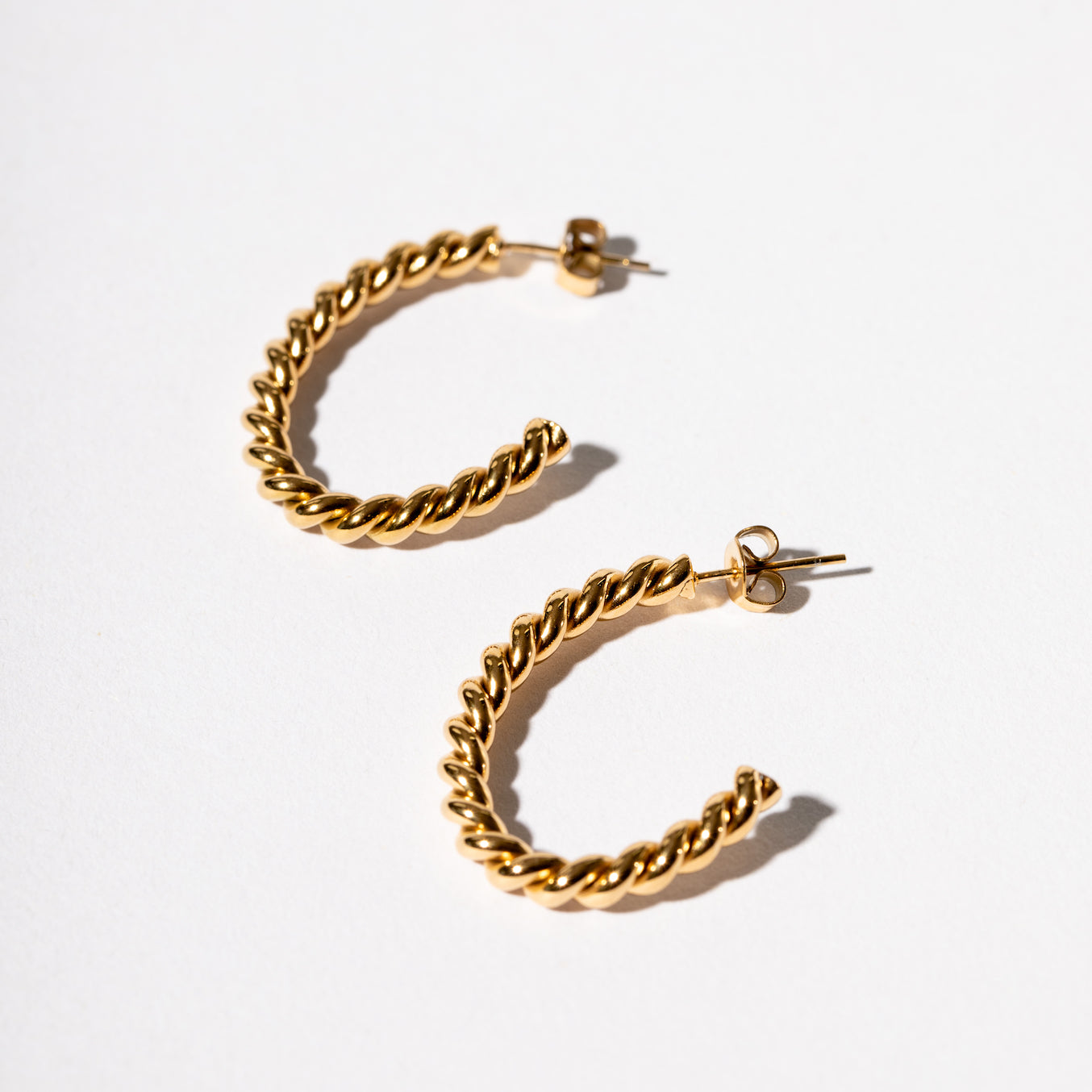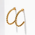 These tightly twisted modern half hoops offer just the same glamour injection for a fraction of the cost. Genuine 18K Gold coated that won't tarnish or fade. The easy comfort post and stud makes them a delight to wear. You won't even feel them on as they elevate your look. Wear them as much as you like to anything you like. Throw out all your tarnished stuff and get the gold you deserve!
