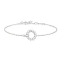 This sparkling circle pendant intersected with a polished curve fixture makes this bracelet a perfect centrepiece to any wrist.