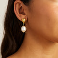 Enhance your accessory collection with these stunning gold-plated pearl drop earrings. Crafted with care, each earring features a smooth, natural freshwater pearl delicately suspended from a textured gold-plated stud. The classic oval pearl drop design adds a sophisticated touch, perfect for elevating any outfit. The secure push-back closure ensures both comfort and stability, making these earrings ideal for both casual wear and special occasions. With their timeless design and subtle elegance, these earrings are a perfect gift for someone special or a luxurious treat for yourself.