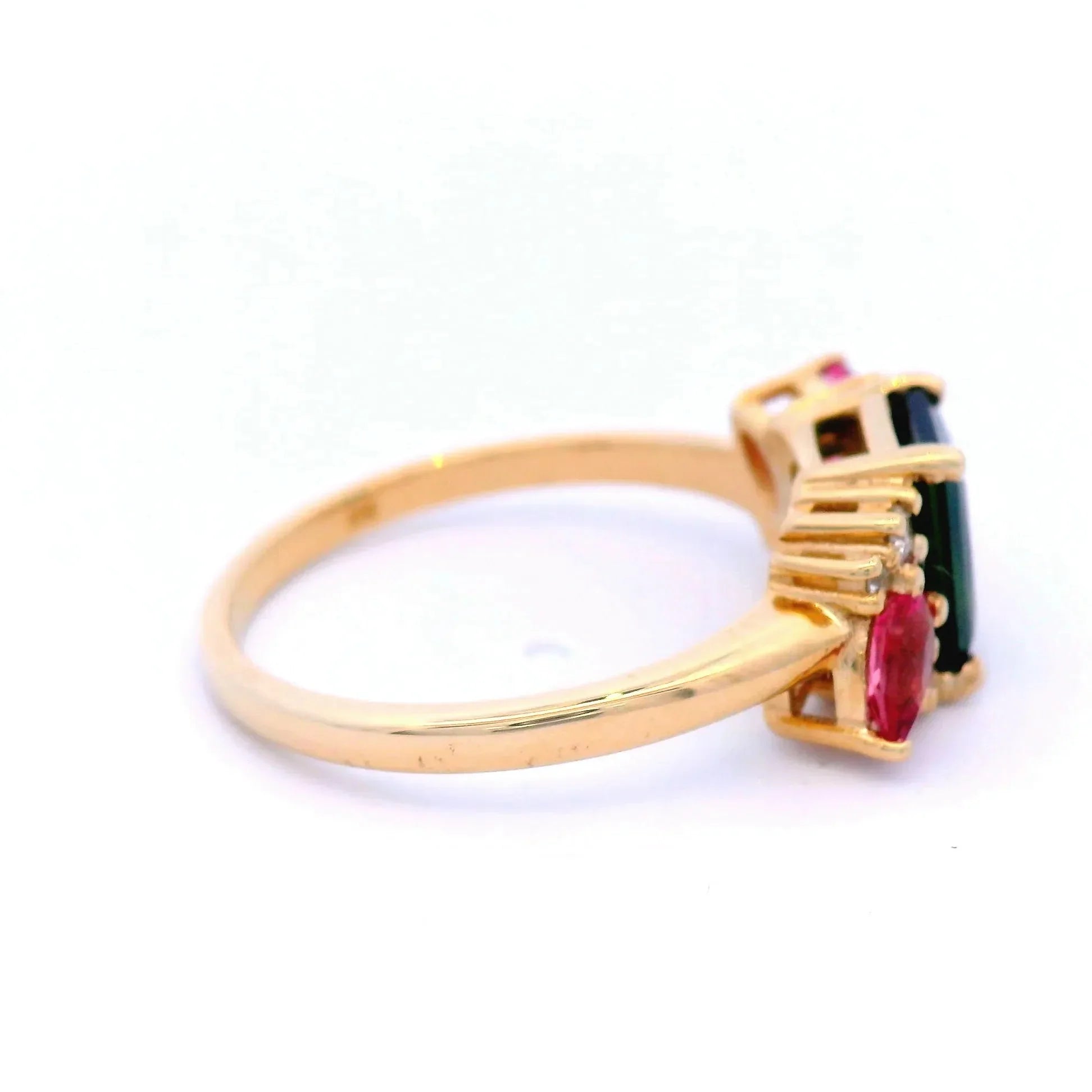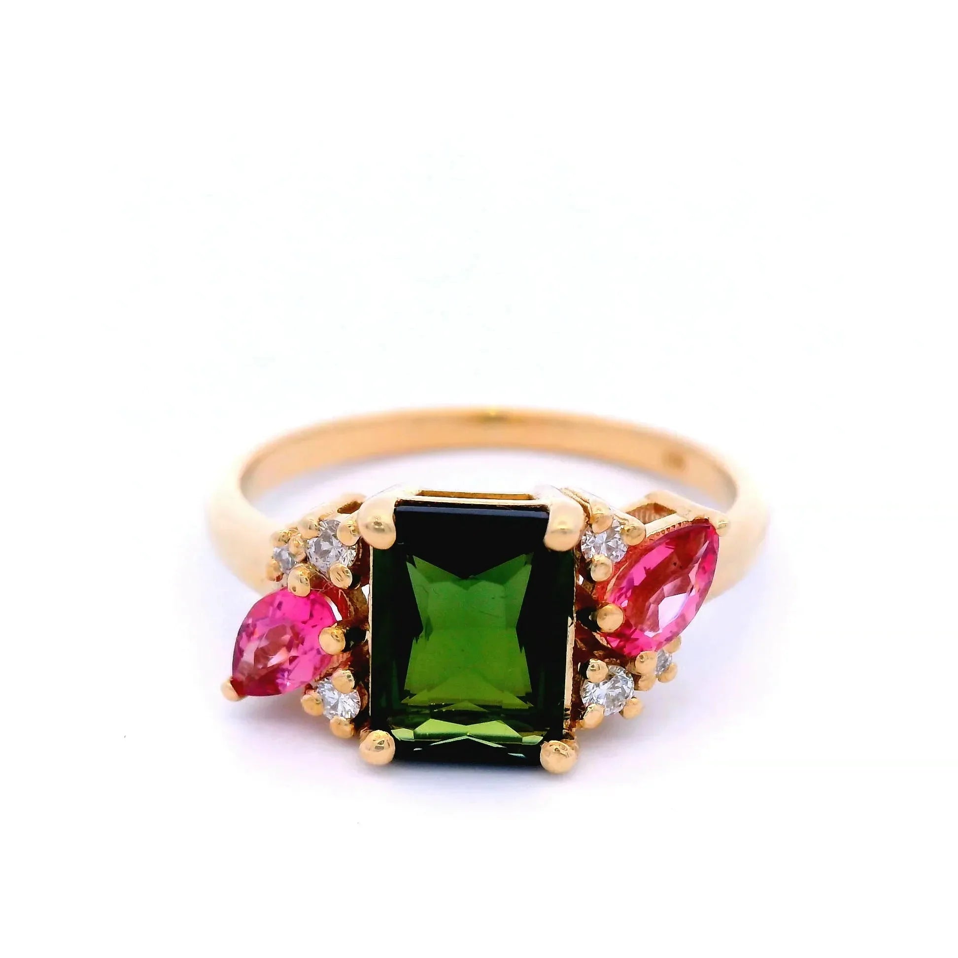 Green and Pink Tourmaline Dress Ring in Yellow Gold