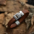 Elevate your style to executive levels with our Harrison bracelet. Crafted from soft genuine Nappa leather, perfectly braided and available in a range of solid colors, Harrison is the epitome of clean simplicity. The signature clasp featuring the engraved STEEL & BARNETT logo, along with the slide ring carrying our SB initials logo, exudes premium sophistication. Designed for individuals with a penchant for business attire and sleek elegance, Harrison seamlessly transitions from the boardroom to casual outings. Pair it with a tailored suit or your favorite casual wear for a timeless and polished look that leaves a lasting impression.