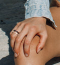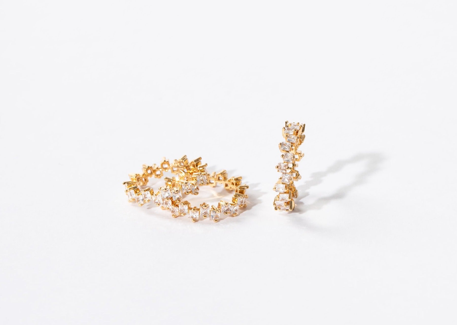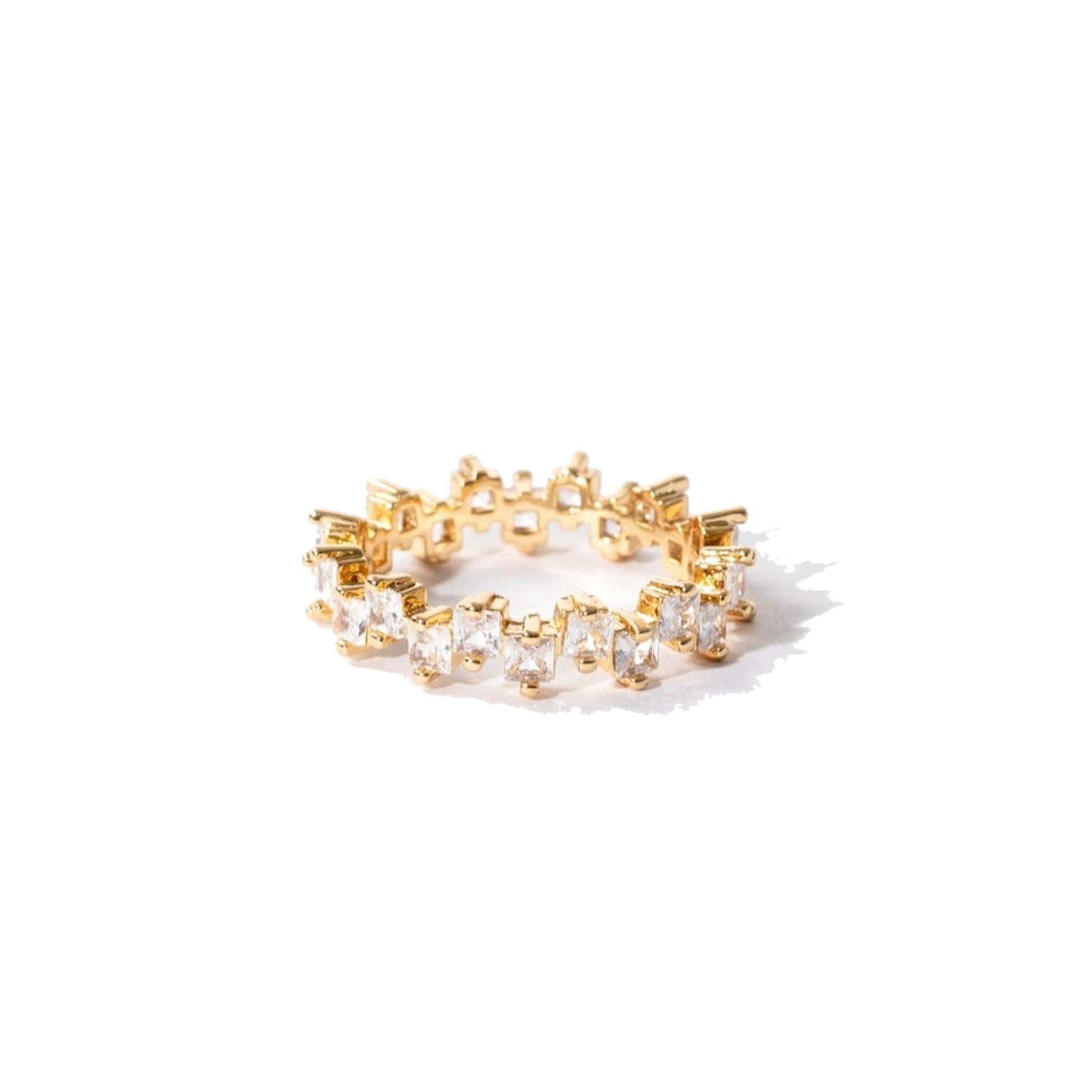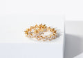 Moissanites are lab grown gems that replicate the exact sparkle and durability of diamonds and coloured gems found in nature. This extremely pretty ring offers over 20 gems set in waterproof permanent 18K gold.Â