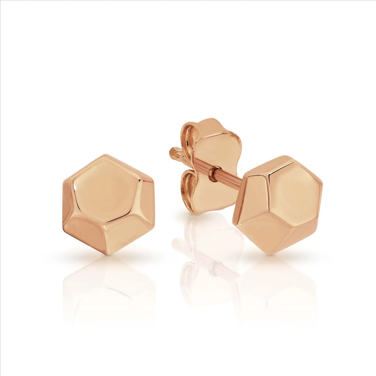 Hexegon Stud Earrings Set in 9 Carat Rose Gold.