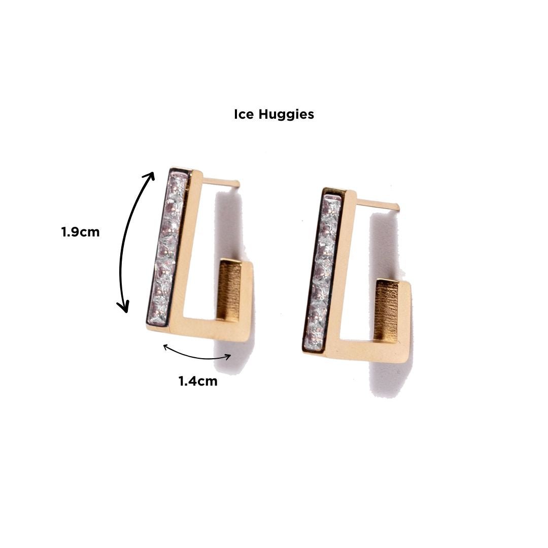 Elegant Gold & Gemstone Ice Huggies Earrings. Shine with Every Move!