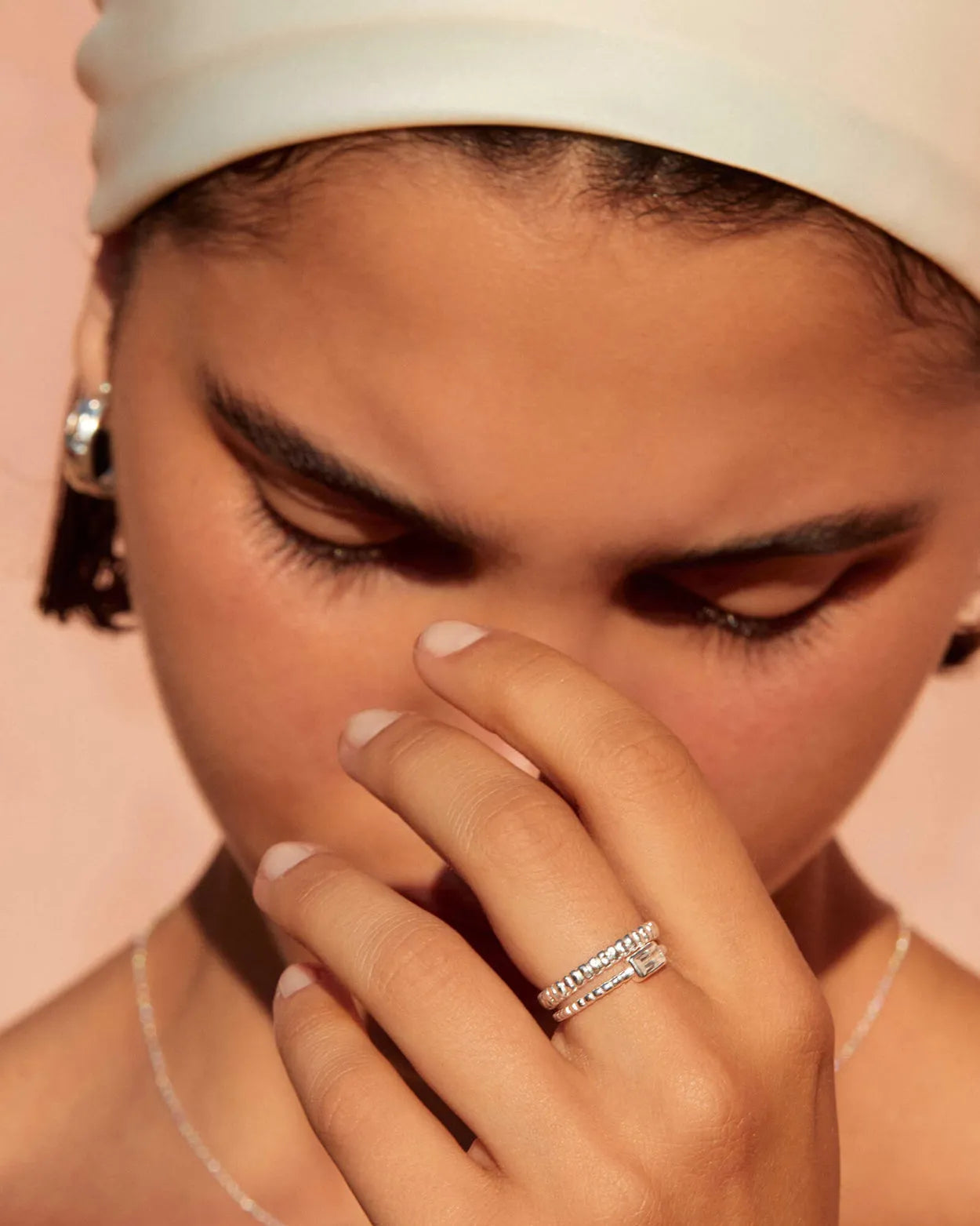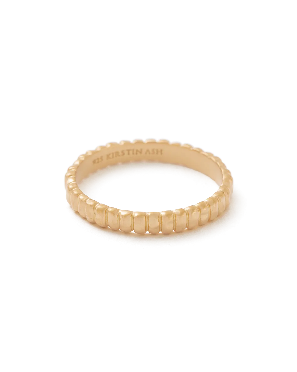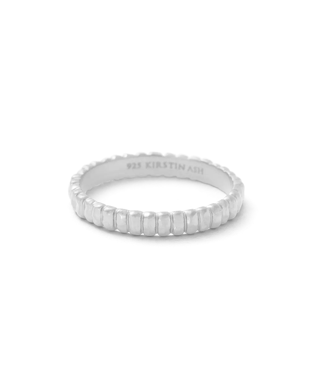 Structured lines meet organic forms. The Cisco Ring reflects the gentle play between light and shadow, creating a dappled, light-refracting texture. This minimal ring can be worn alone, or stacked to create a bold look.