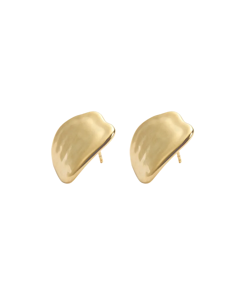 Capturing the beauty of morning light dancing on the ocean surface. The Dawn Oversized Studs have an organic, square-like shape and soft, undulating texture. With reflective surfaces that play with light, these bold studs are designed to make an impact.