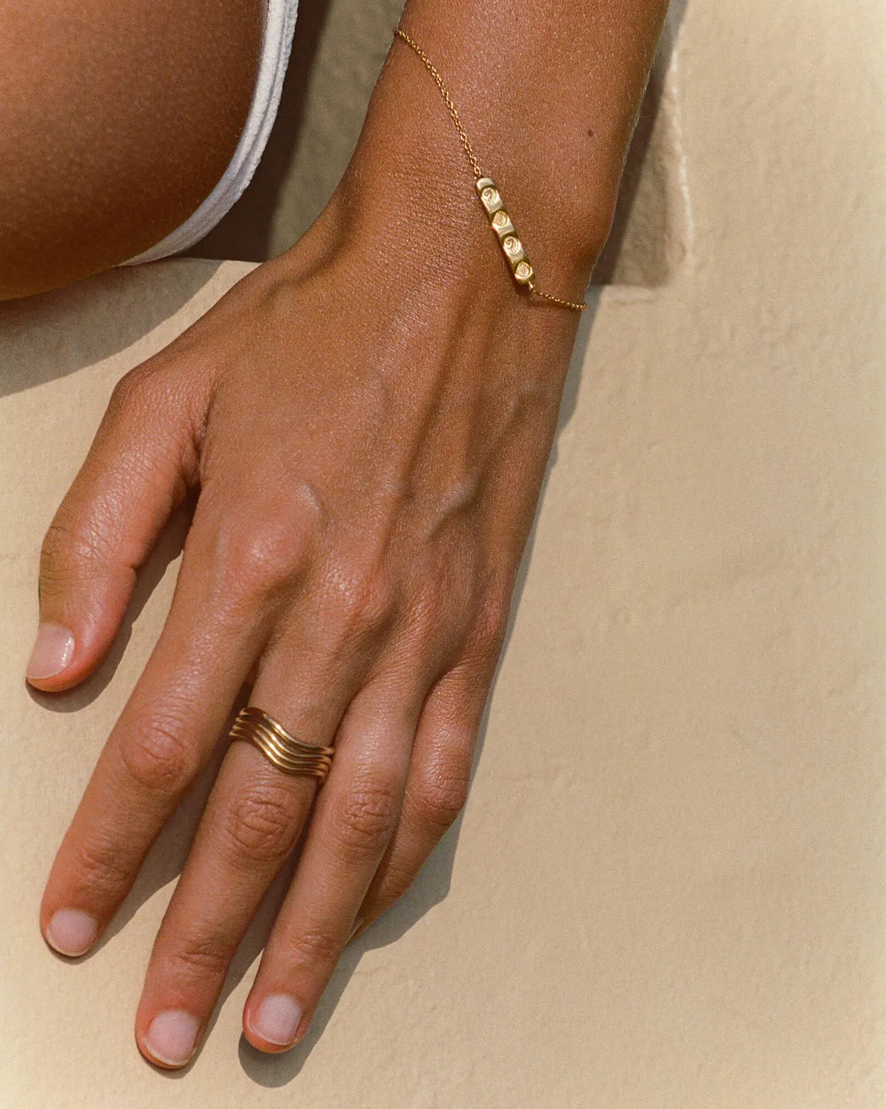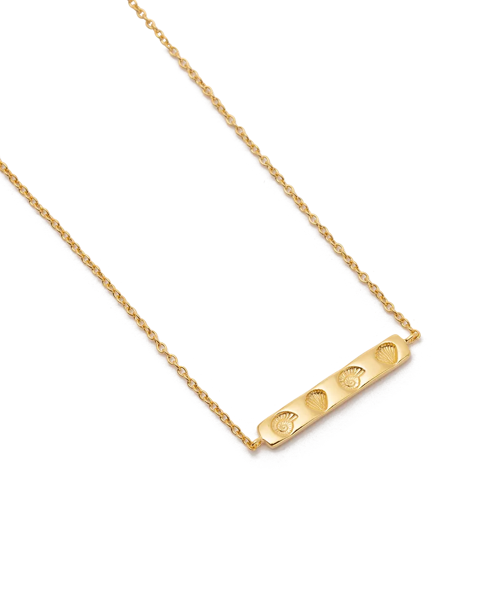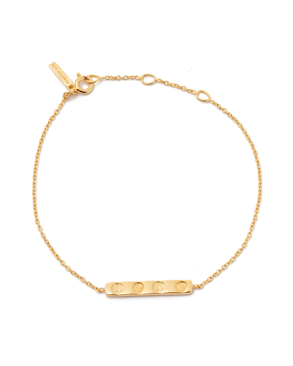 Reminiscent of balmy days spent along the shoreline, the Seaside Bracelet features a series of tiny hand drawn seashells across a bar shaped pendant.
