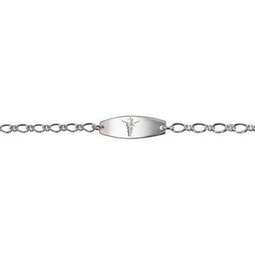 Medic Alert Bracelet in Sterling Silver with Oval ID Plate on 1+1 Figaro LInk Chain.