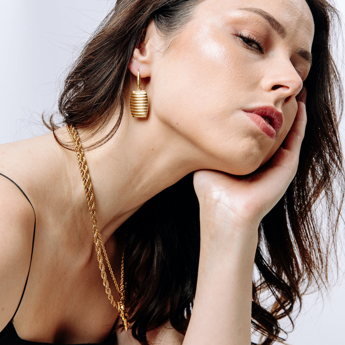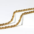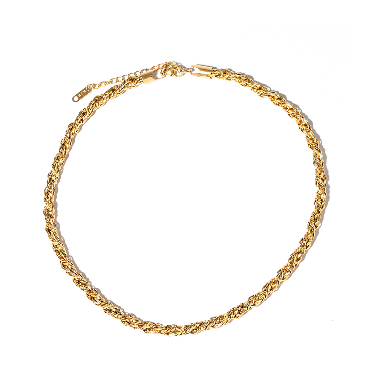 This beautiful design features multiple gold chains twisted together to create a texturally intriguing and rustic piece of jewellery.