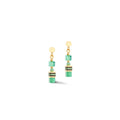 Delicate drop earrings in a Mini Cube design. Complements the latest fashions perfectly with its trendy green and gold colourway. Handmade in Germany with synthetic tiger's eye, European Crystals, rhinestone rondelles and gold plated stainless steel.