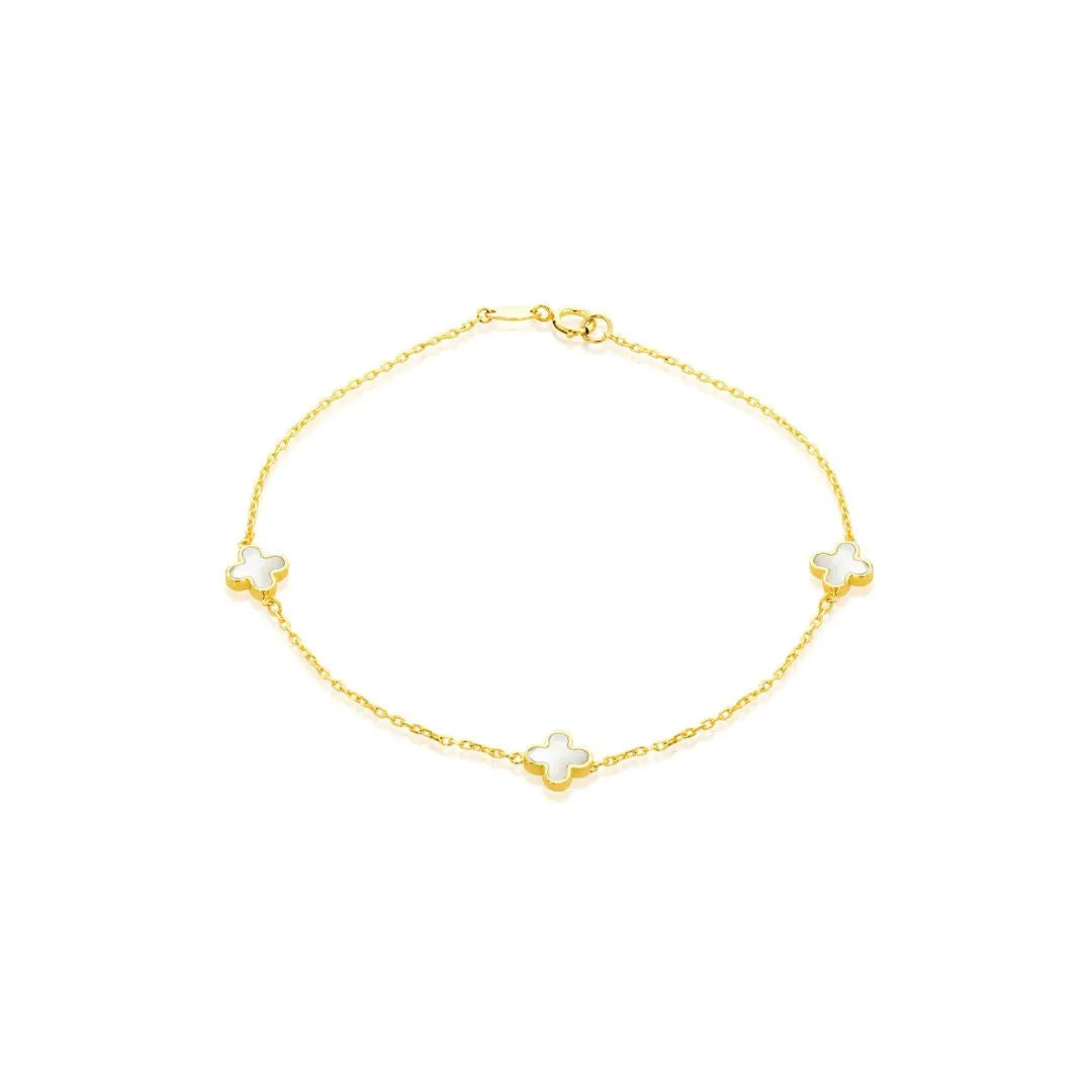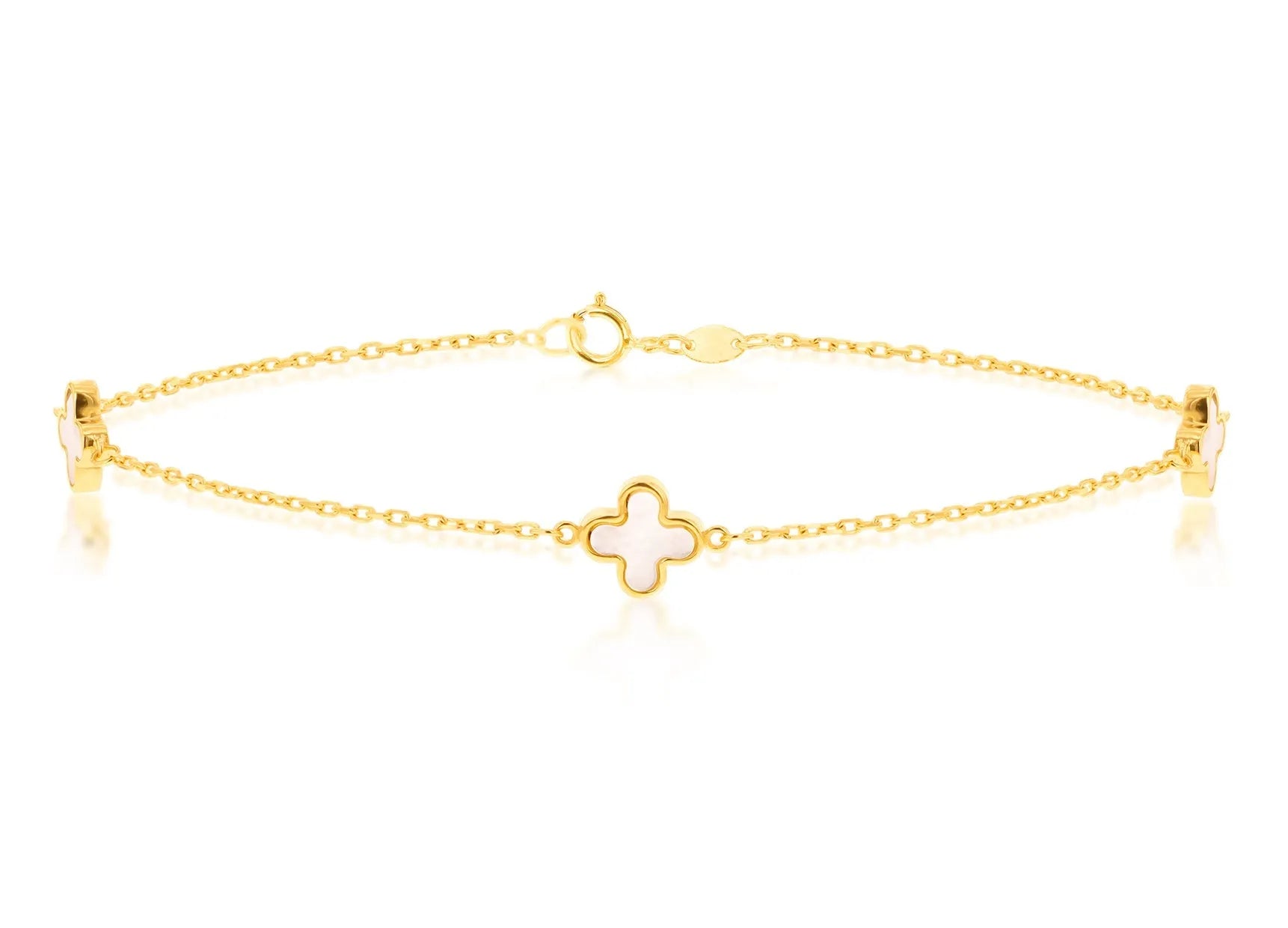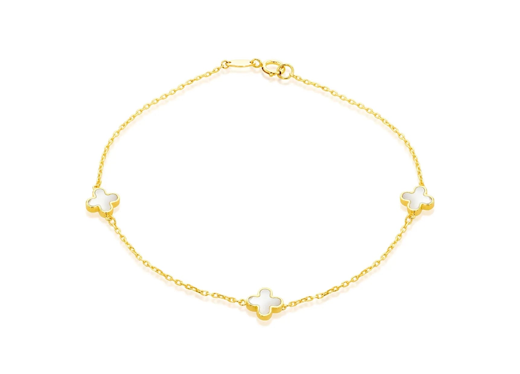 Mother of Pearl 4 Leaf Clover Bracelet in Yellow Gold