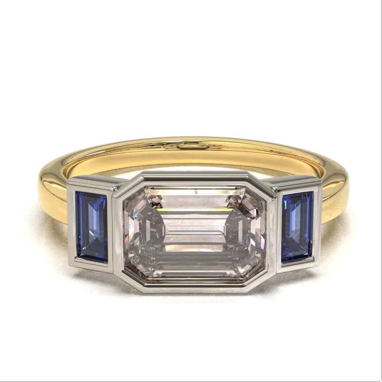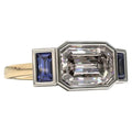 Three Stones Emerald Cut 1.88 Carat Sapphire Engagement Ring in Platinum & Gold