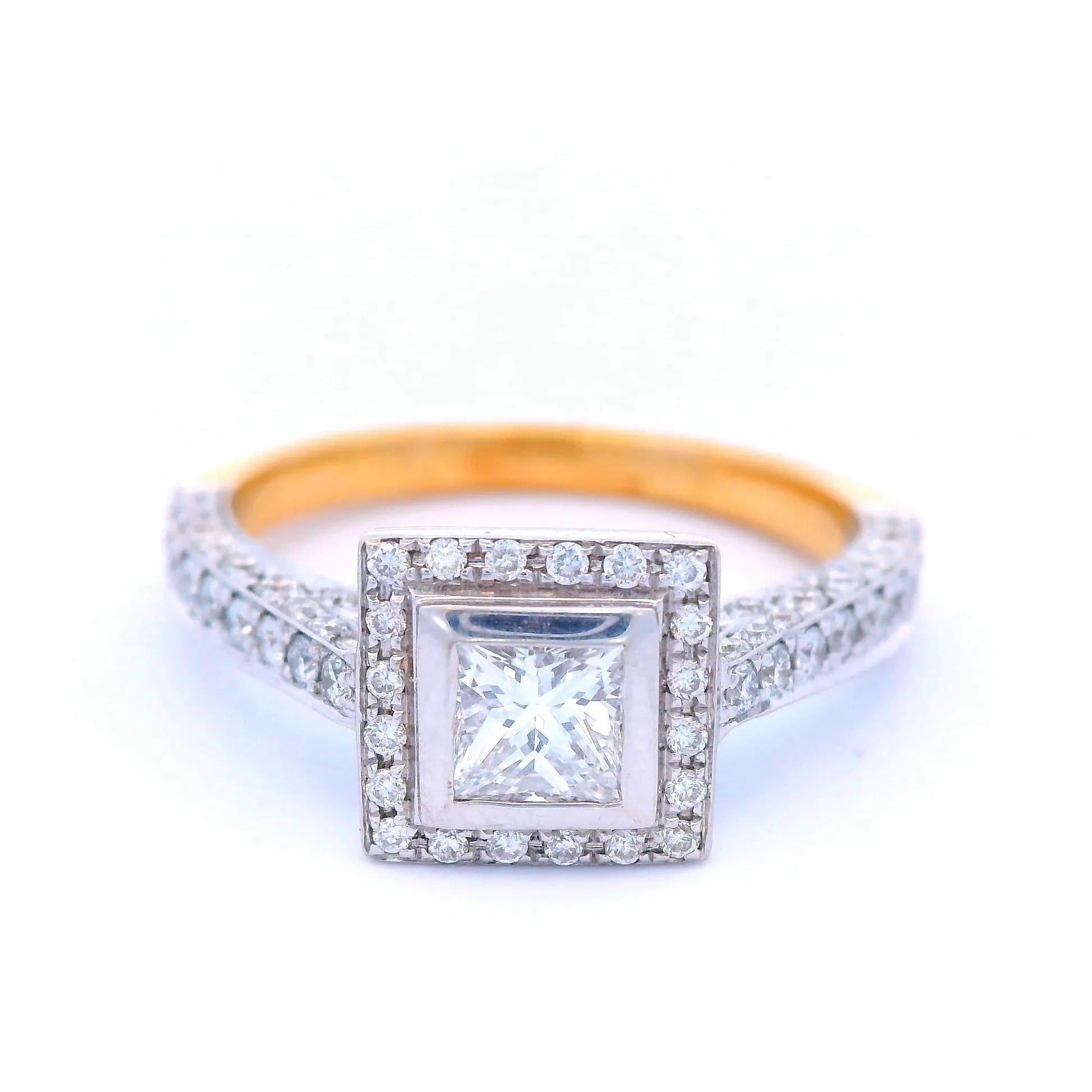 O2 18CT 2 TONE Dia RING 1 X.40CT PRINCESS SURROUNDS=.60CT