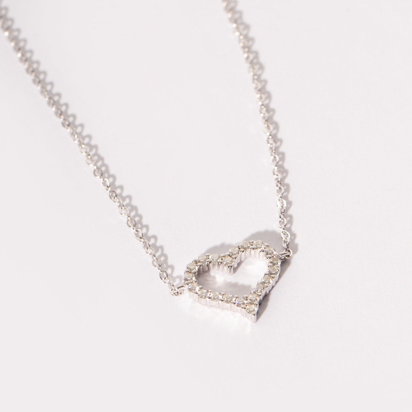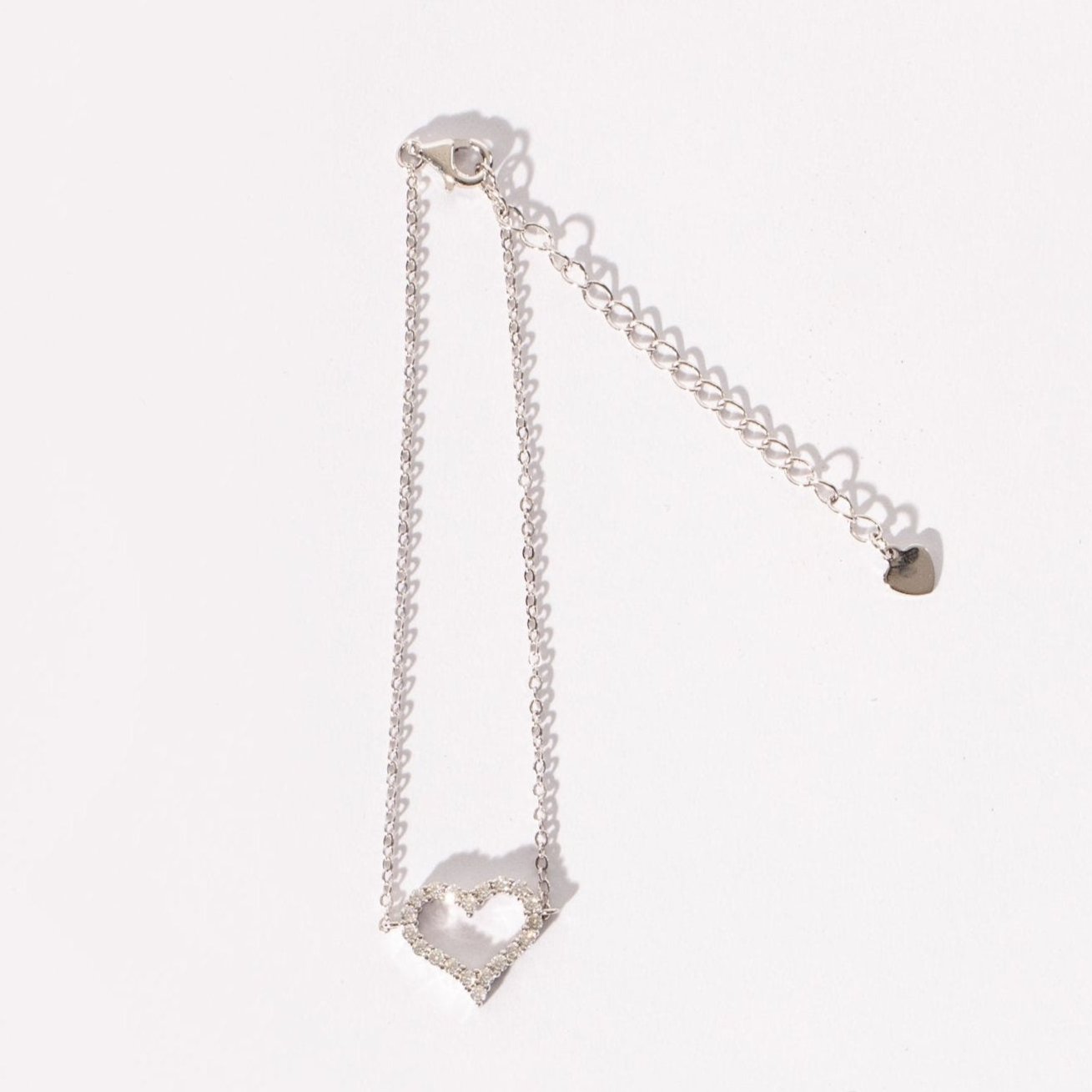 Made with a lobster clasp for secure closing and all day wear. There are 3 intervals to secure it within the chain, so that it may be worn to your desired length. Ranging from 6 inches through to 8 inches. Made in solid silver throughout it won't tarnish and is waterproof. Our gems pass the diamond jewellers test too! The perfect match for our Heart Halo Diamond Earrings.Â