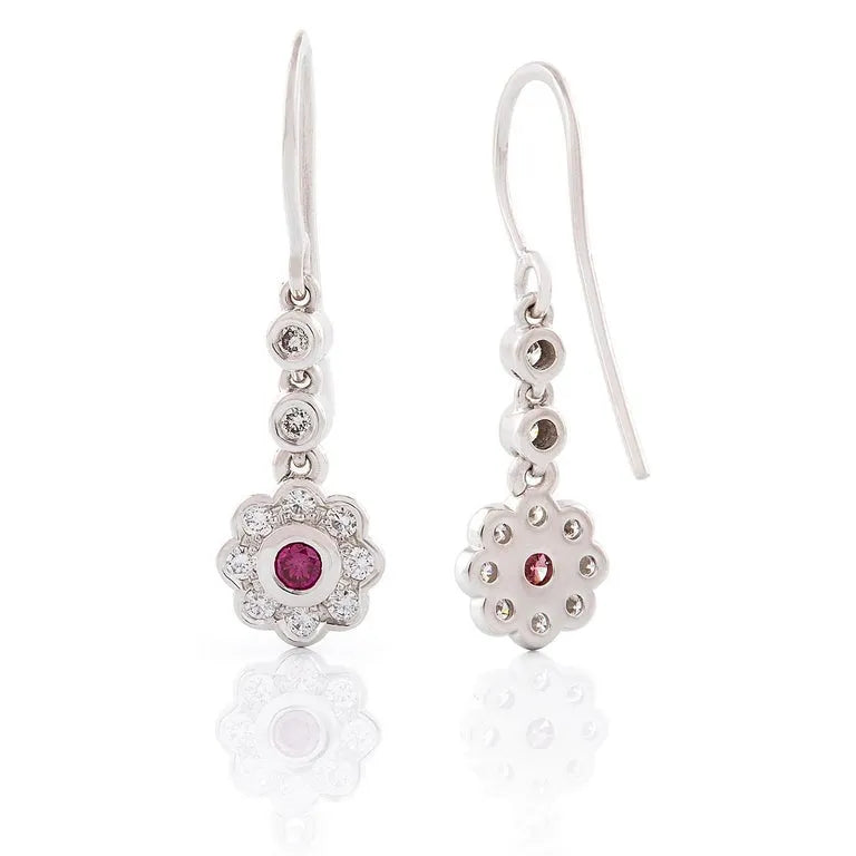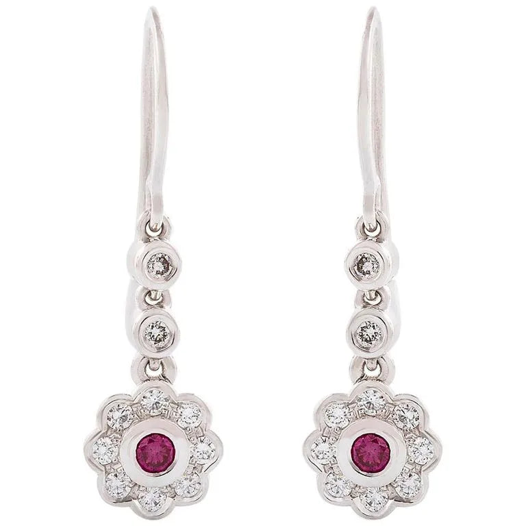 The perfect complement to any lady. These gorgeous diamond cluster drop earrings are featured a pair of treated pink diamonds with the surrounding white diamonds, simple and elegant.