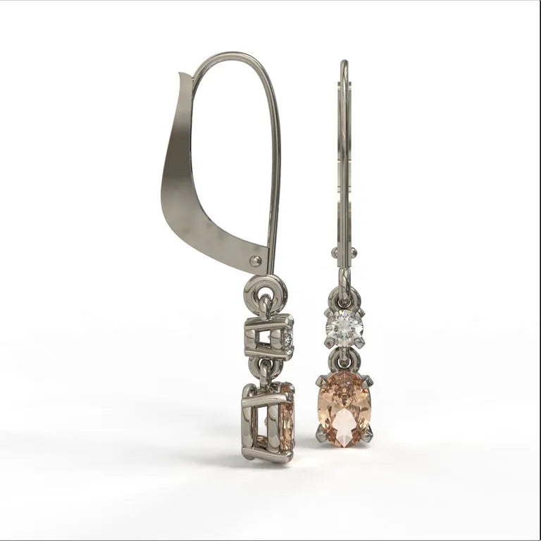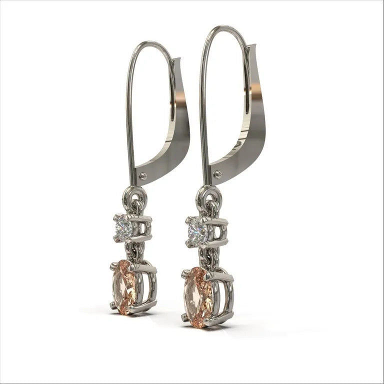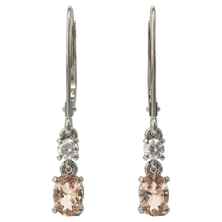 Oval Morganite Round Diamond Earrings in 18 Carat White Gold