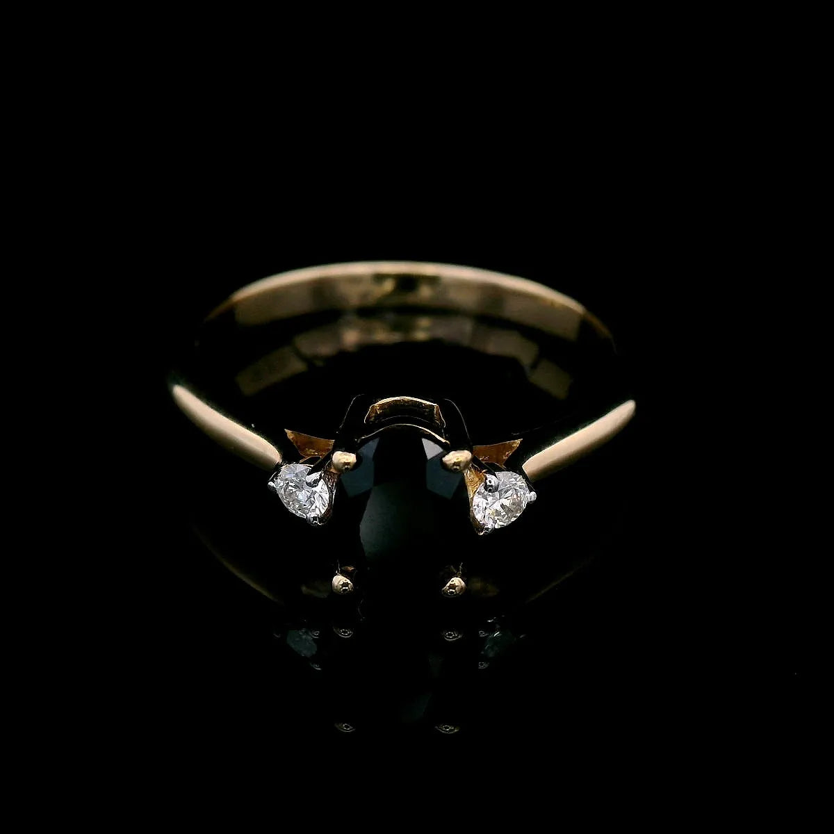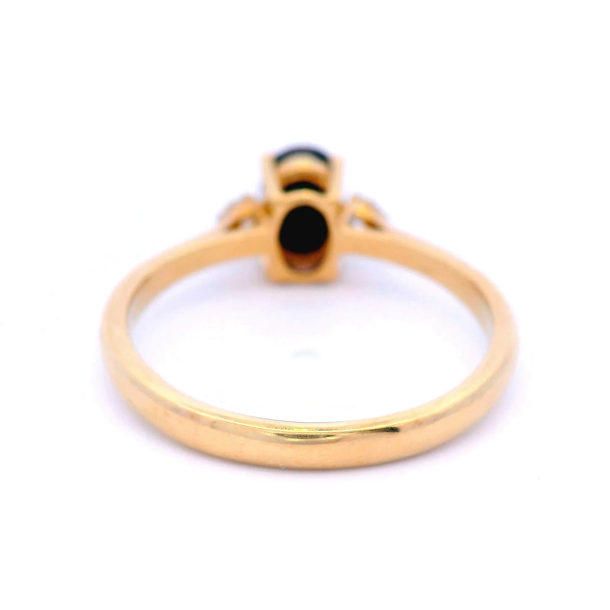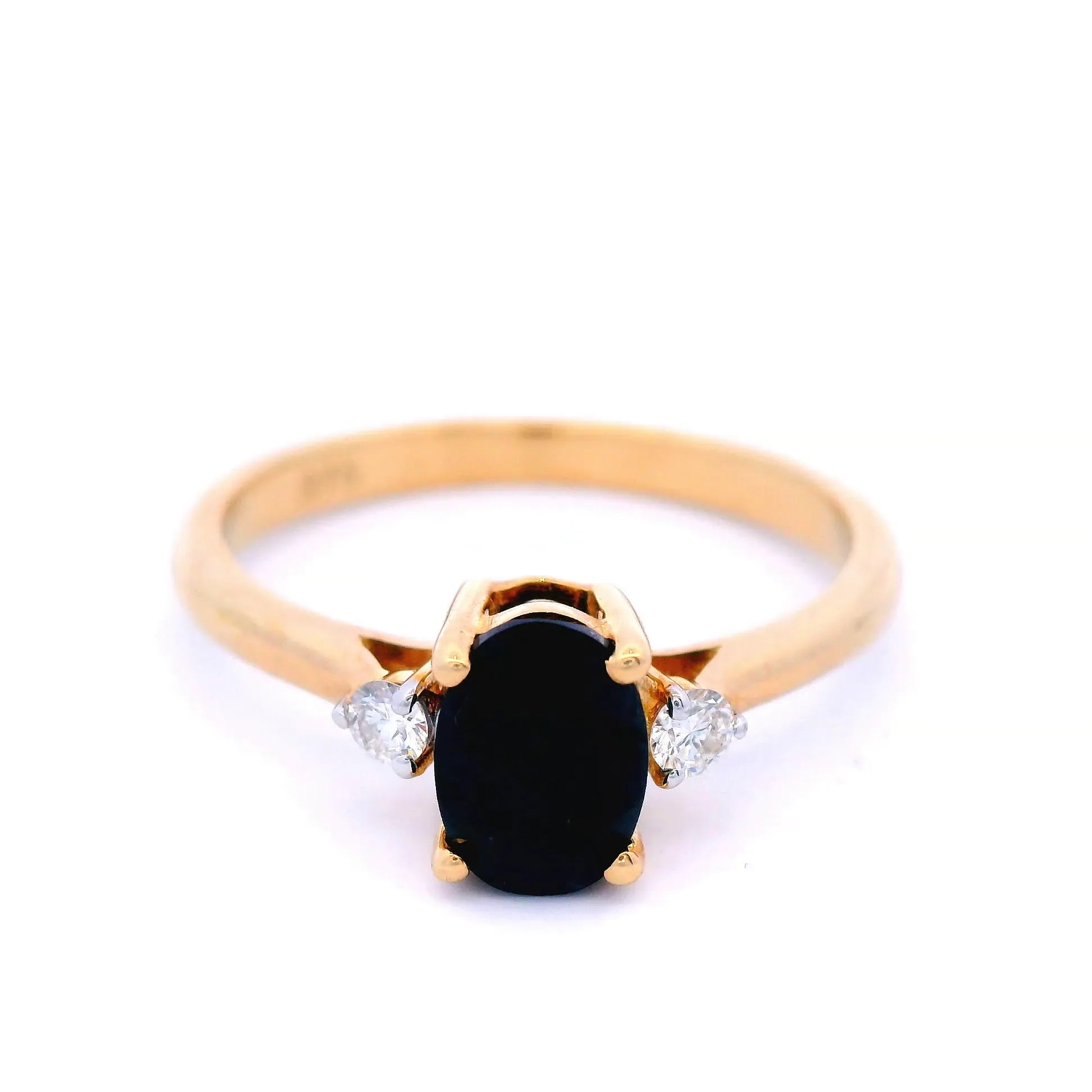 Oval Cut Black Sapphire Ring with 2 x RBC GHI12 = 0.10ct in 9ct YG