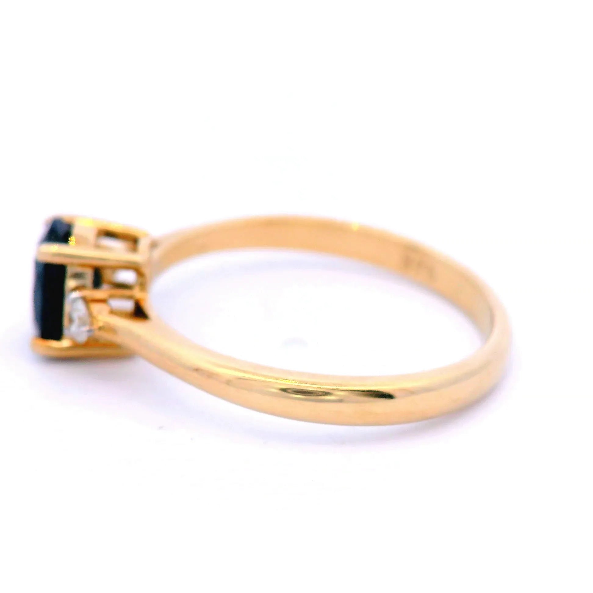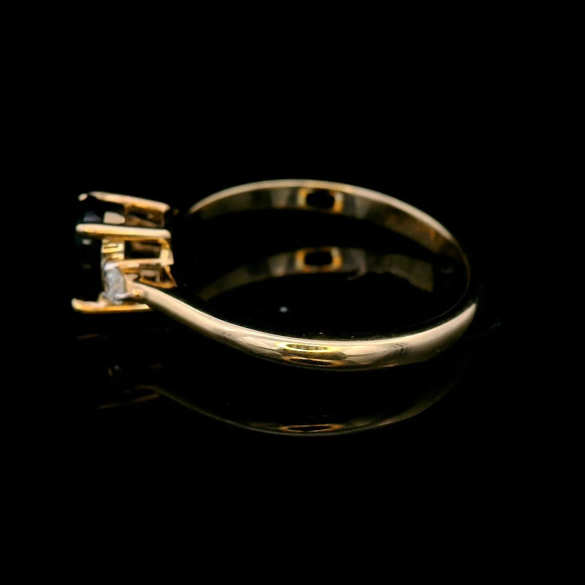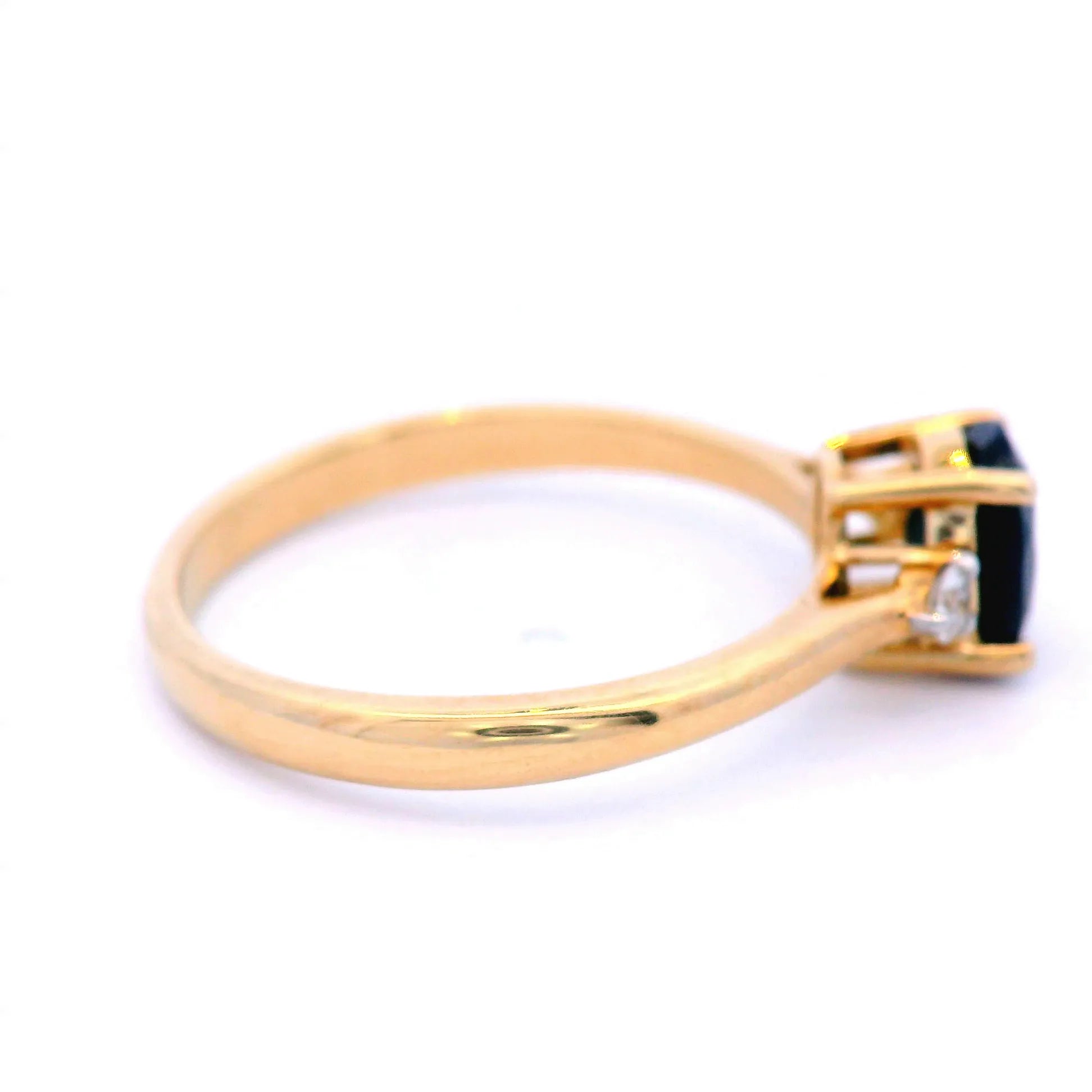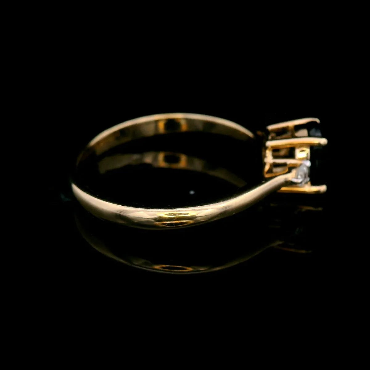 Oval Cut Black Sapphire Ring with 2 x RBC GHI12 = 0.10ct in 9ct YG