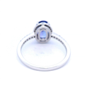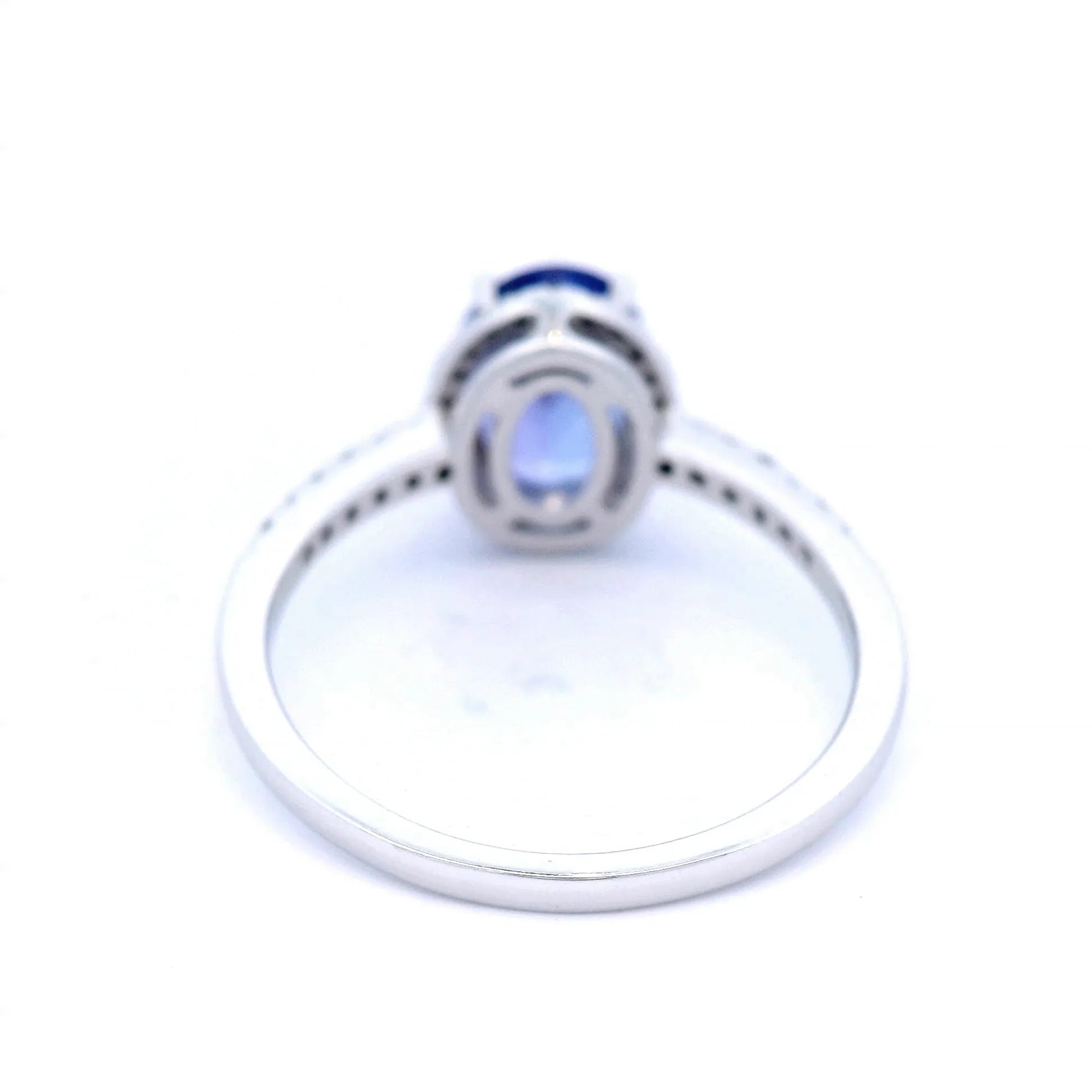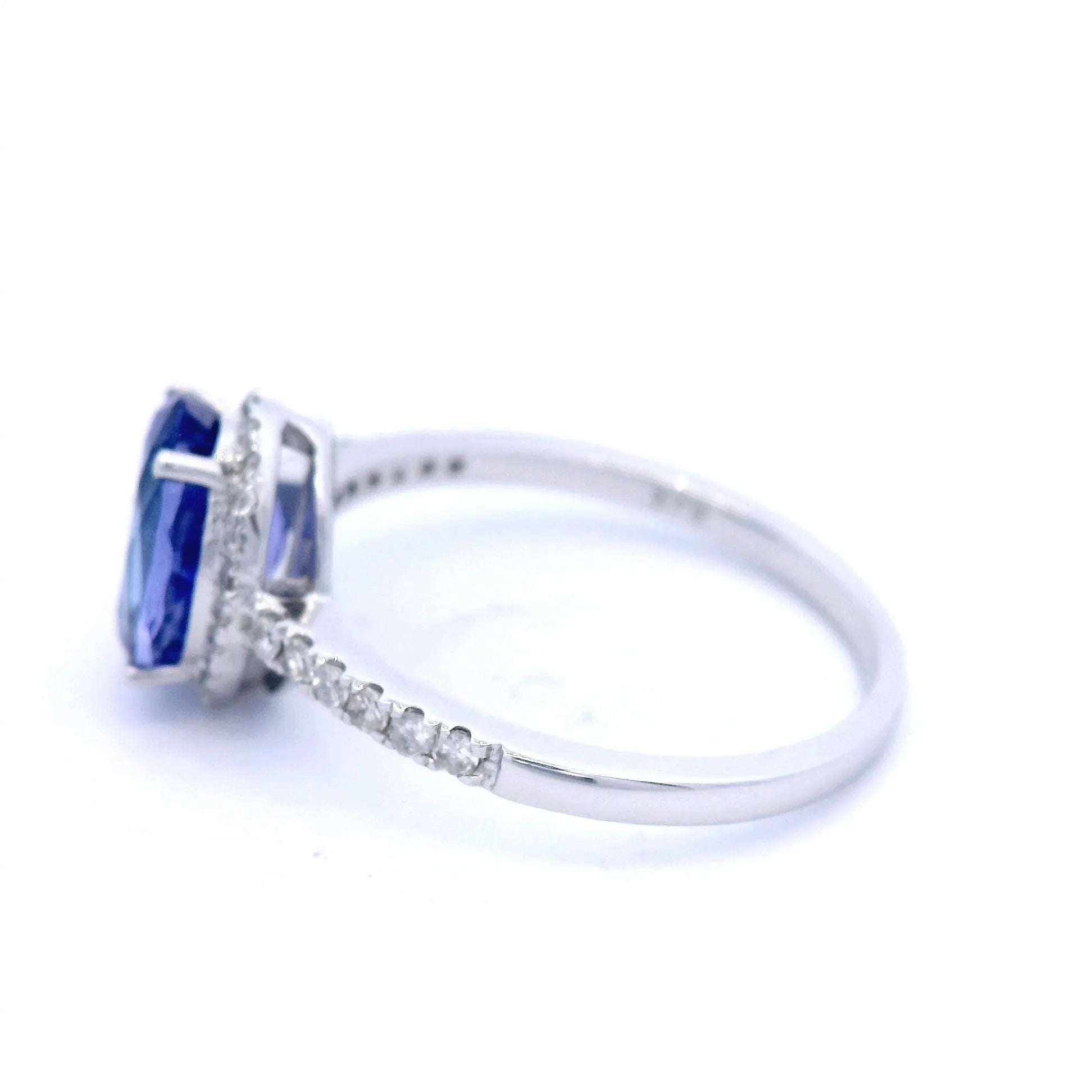 Oval Cut Tanzanite Dress Ring with Diamond Halo and Shoulder in White Gold