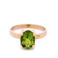 9 Carat Yellow Gold Oval Peridit Gemstone Ring in a 4 claw Setting and Hammered Detail Band