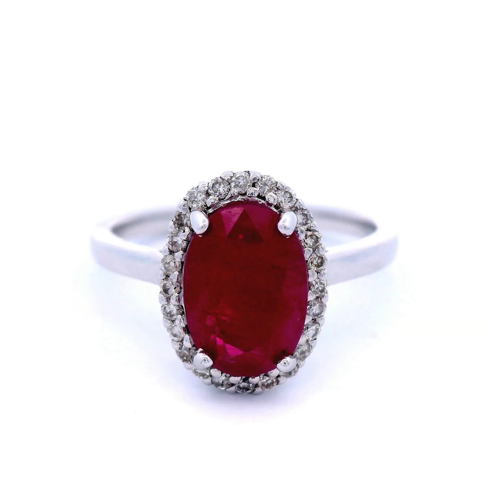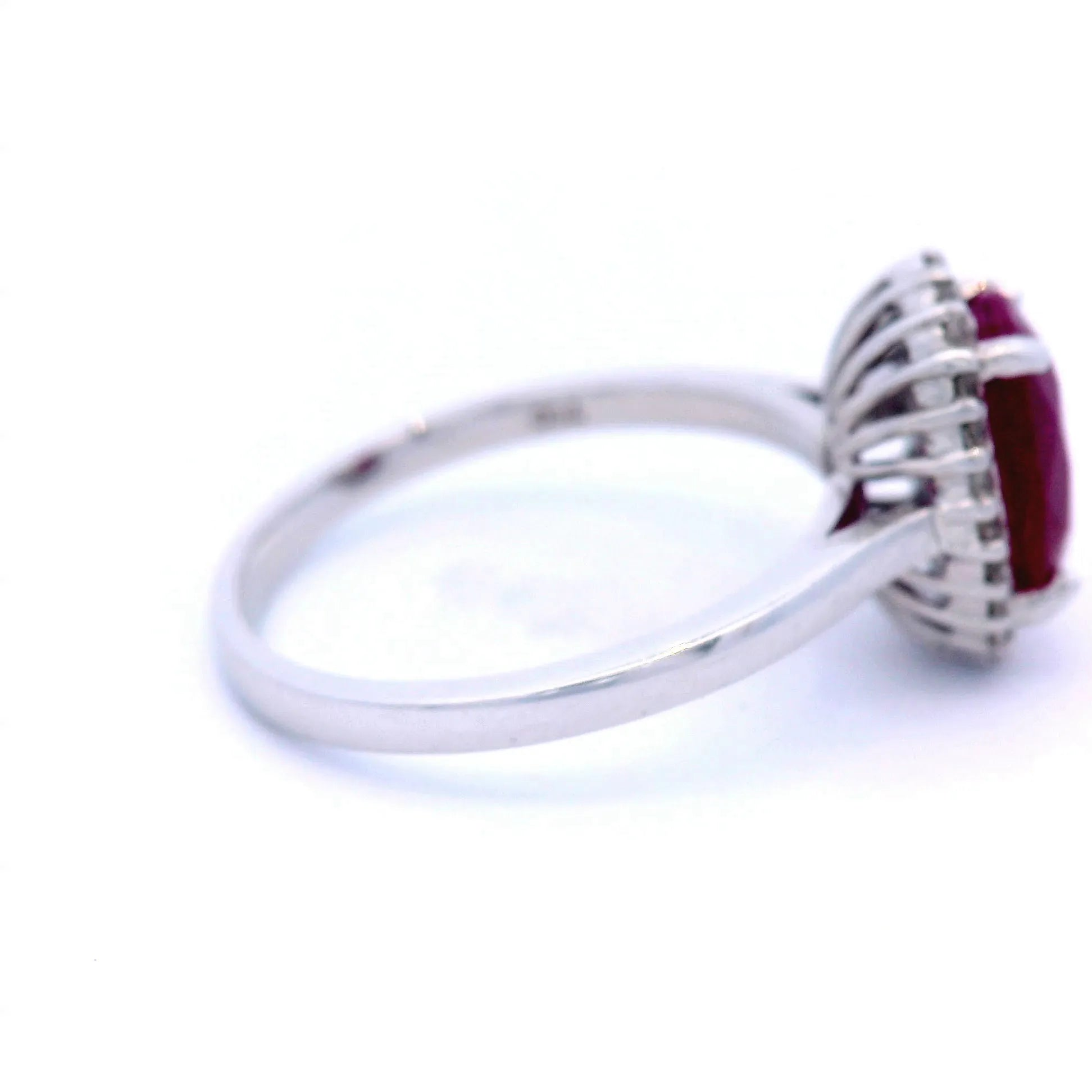 18 CARAT WHITE GOLD Oval NAT RUBY 9.7mm x 6.8mm DIA DRESS RING
