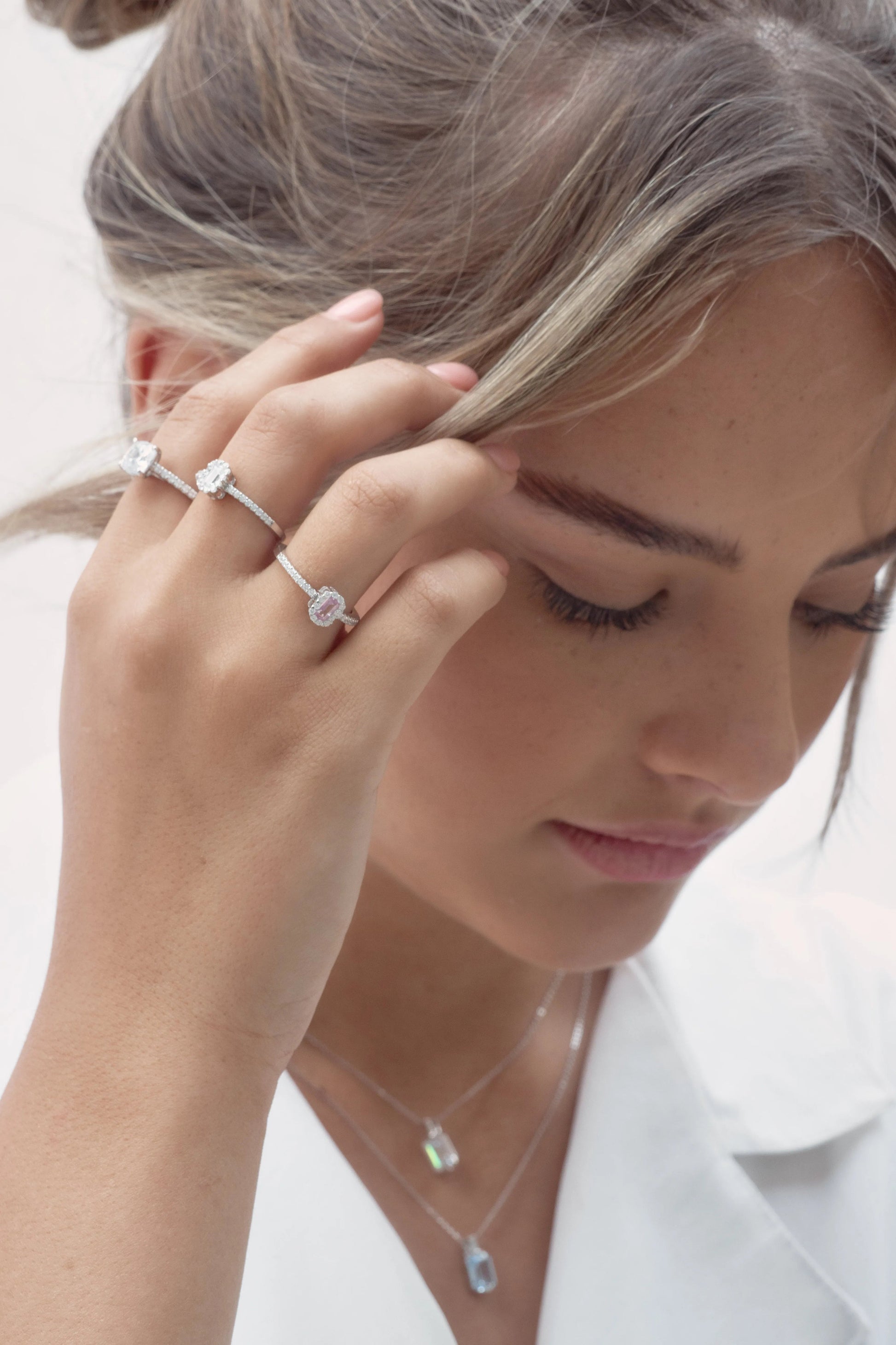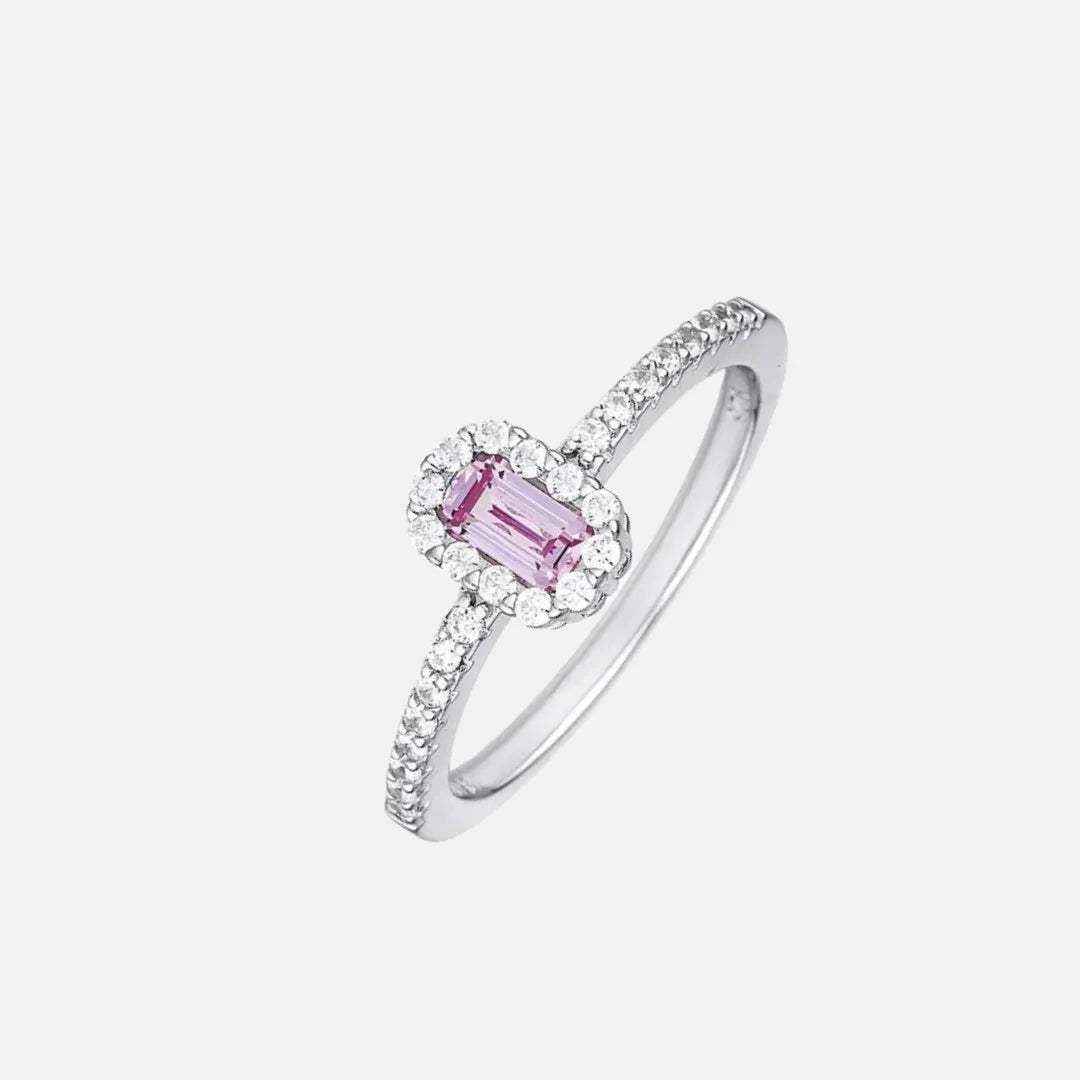 The Paris Ring in Pink offers a fresh and playful twist on a timeless silhouette. Crafted with dazzling white cubic zirconia, this ring adds a soft pop of pink for a look that’s both fun and elegant. Perfect for wearing solo or stacking with other favourites, it's a modern must-have for your jewellery wardrobe.
