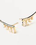 The Aqua Climbing earrings have four white fixed zirconia pendants in differents sizes, made with silver and 18K gold plating.