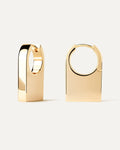 Gold-plated distinctive geometric hoop earrings with an elongated square shape
