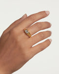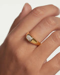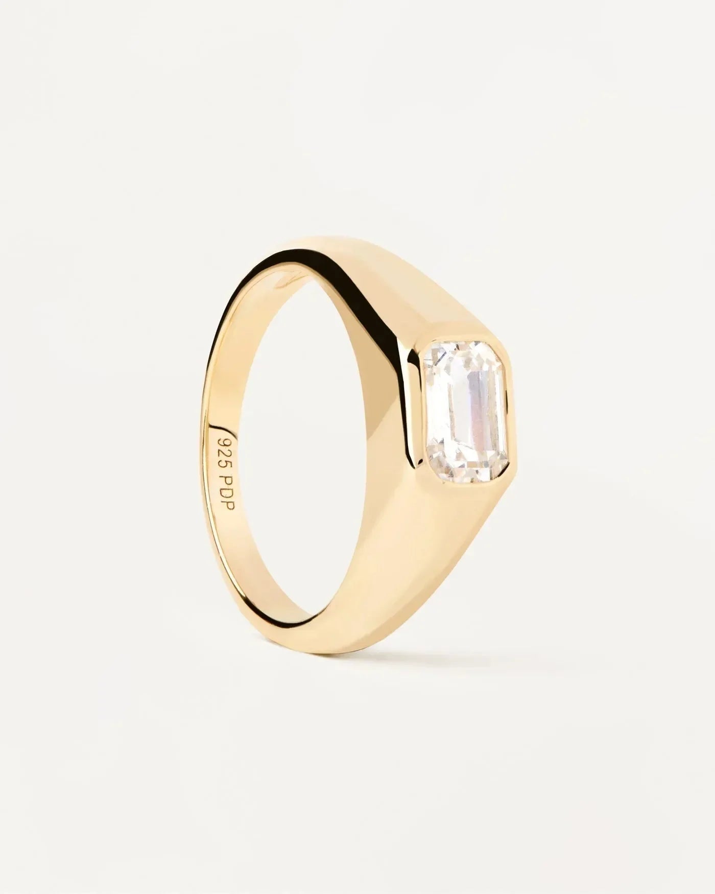 PDPAOLA Gold-Plated Silver Signet Ring With Rectangular White Zirconia