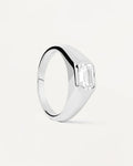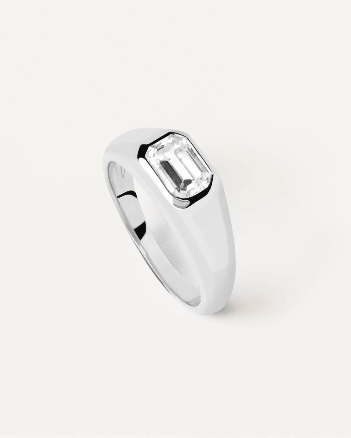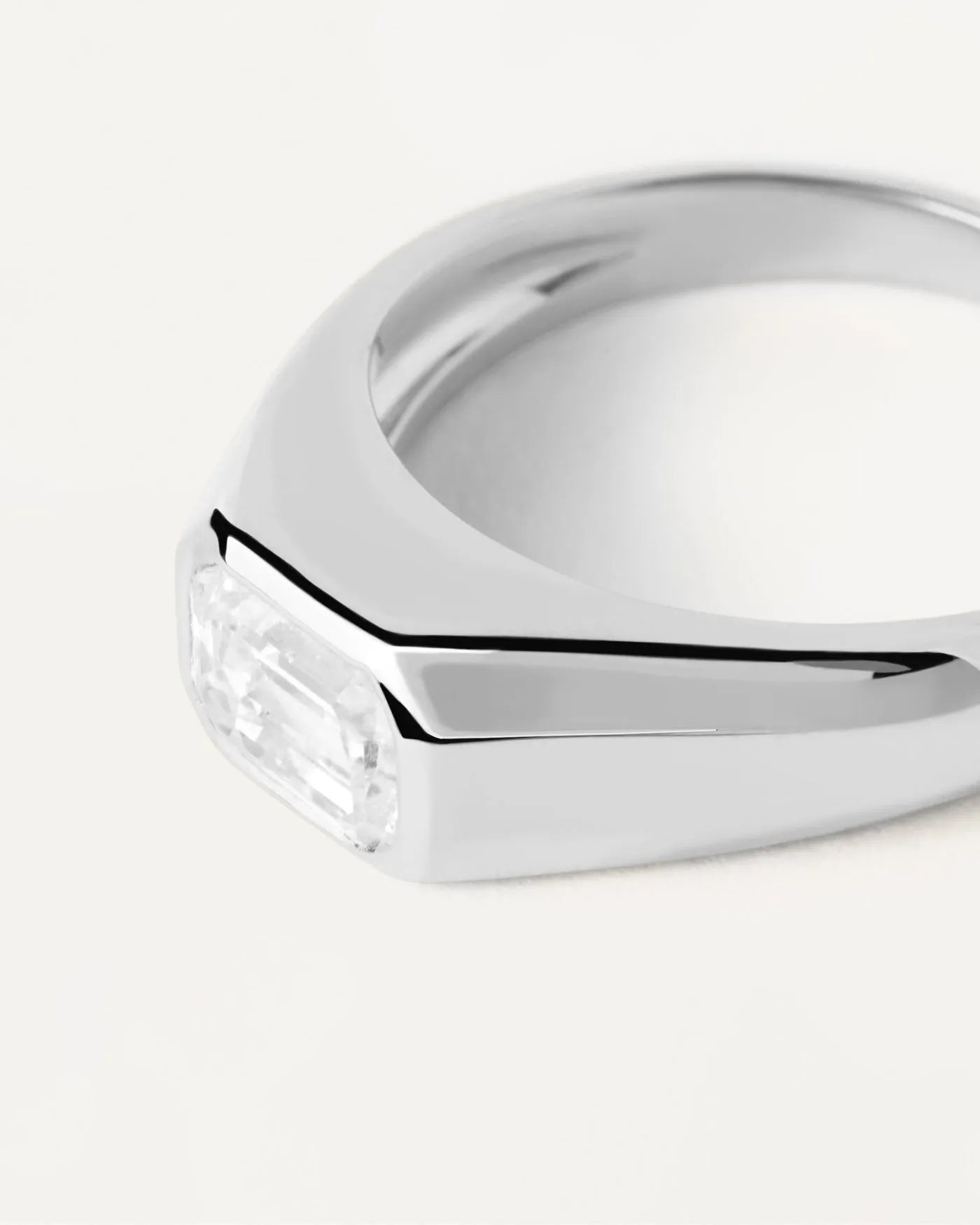 The Octagon Shimmer Stamp silver Ring is a thick ring made of 925 silver set with one octagonal-cut zirconia on the center.