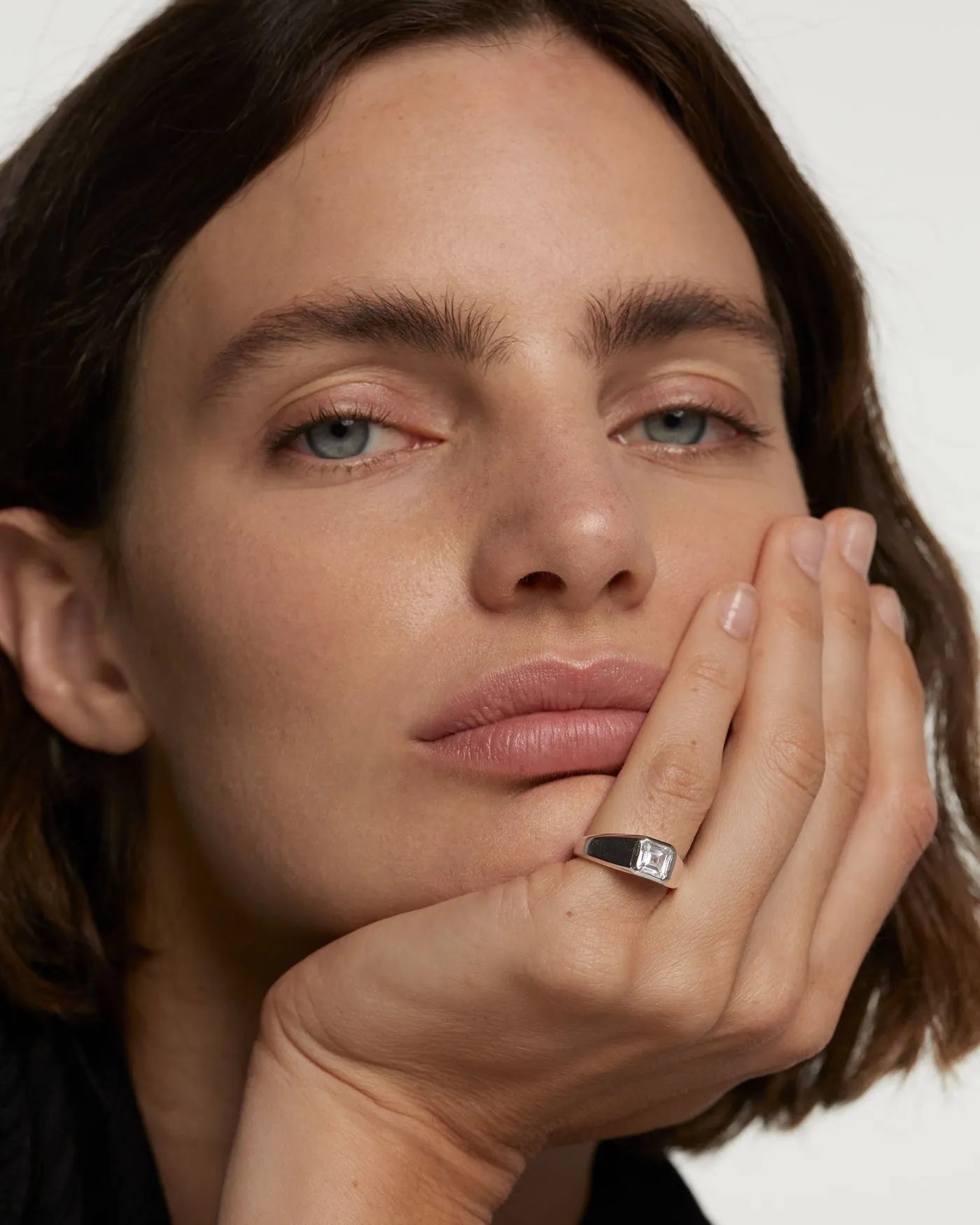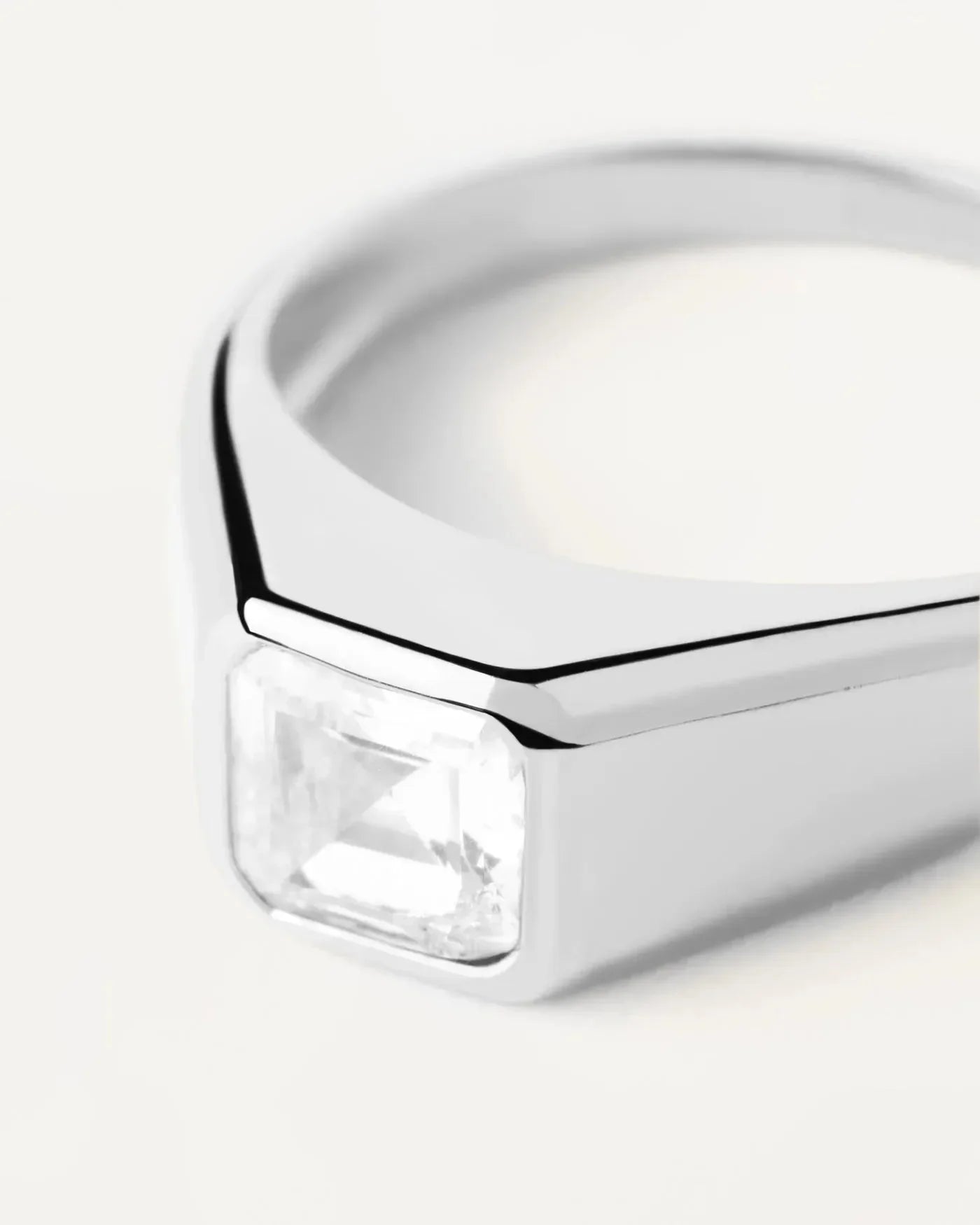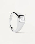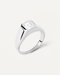 The Square Shimmer Stamp silver Ring is a thick ring made in 925 silver set with a radiant cut white zirconia.