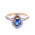 Pear Shaped Ceylon Sapphire with Diamond Halo Set Dress Ring