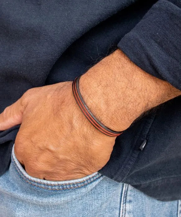 Colour: Coral Red Rope with Black Stainless Steel Cuff